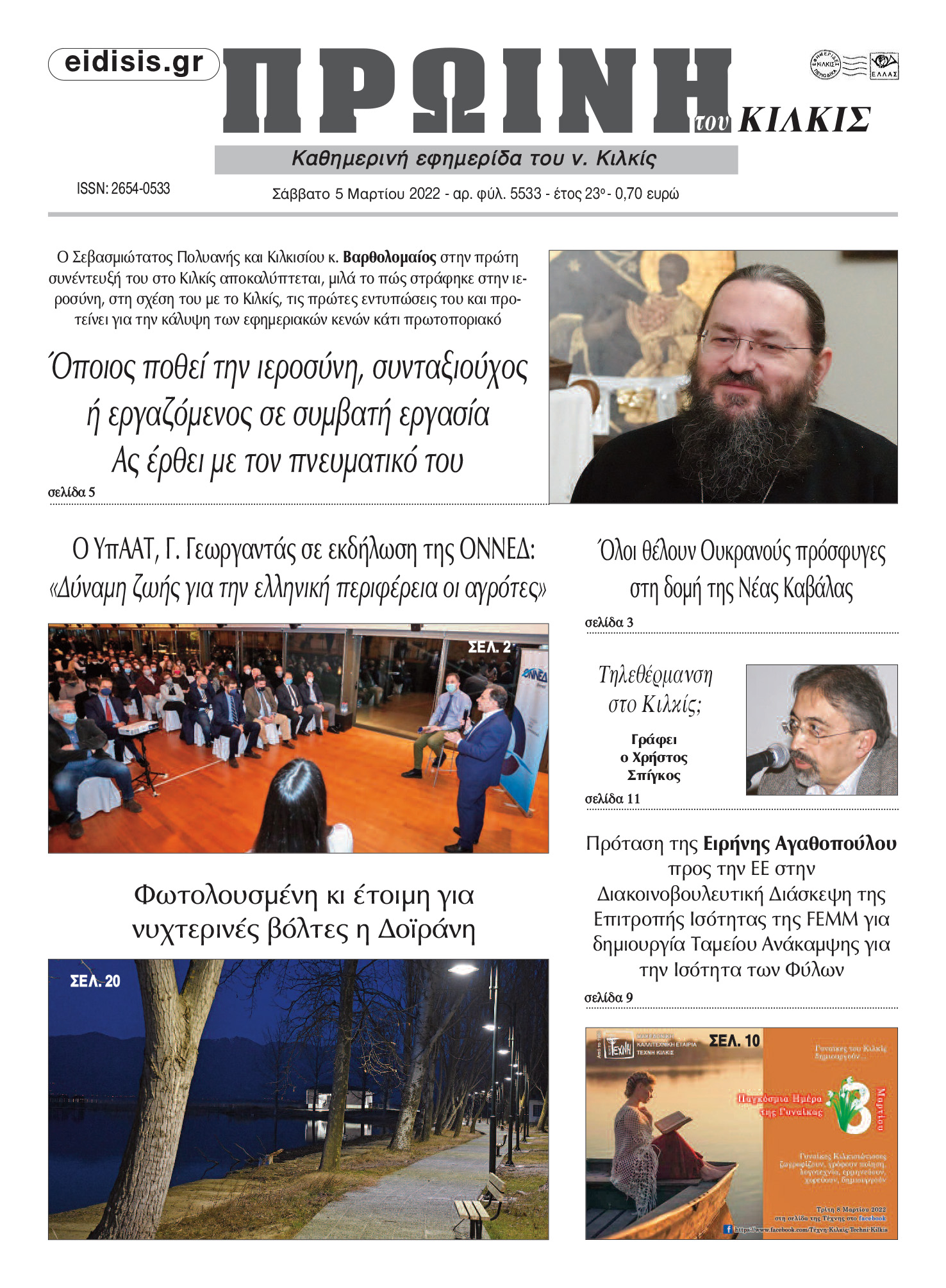 Διαβάστε το νέο πρωτοσέλιδο της Πρωινής του Κιλκίς, μοναδικής καθημερινής εφημερίδας του ν. Κιλκίς (5-3-2022)