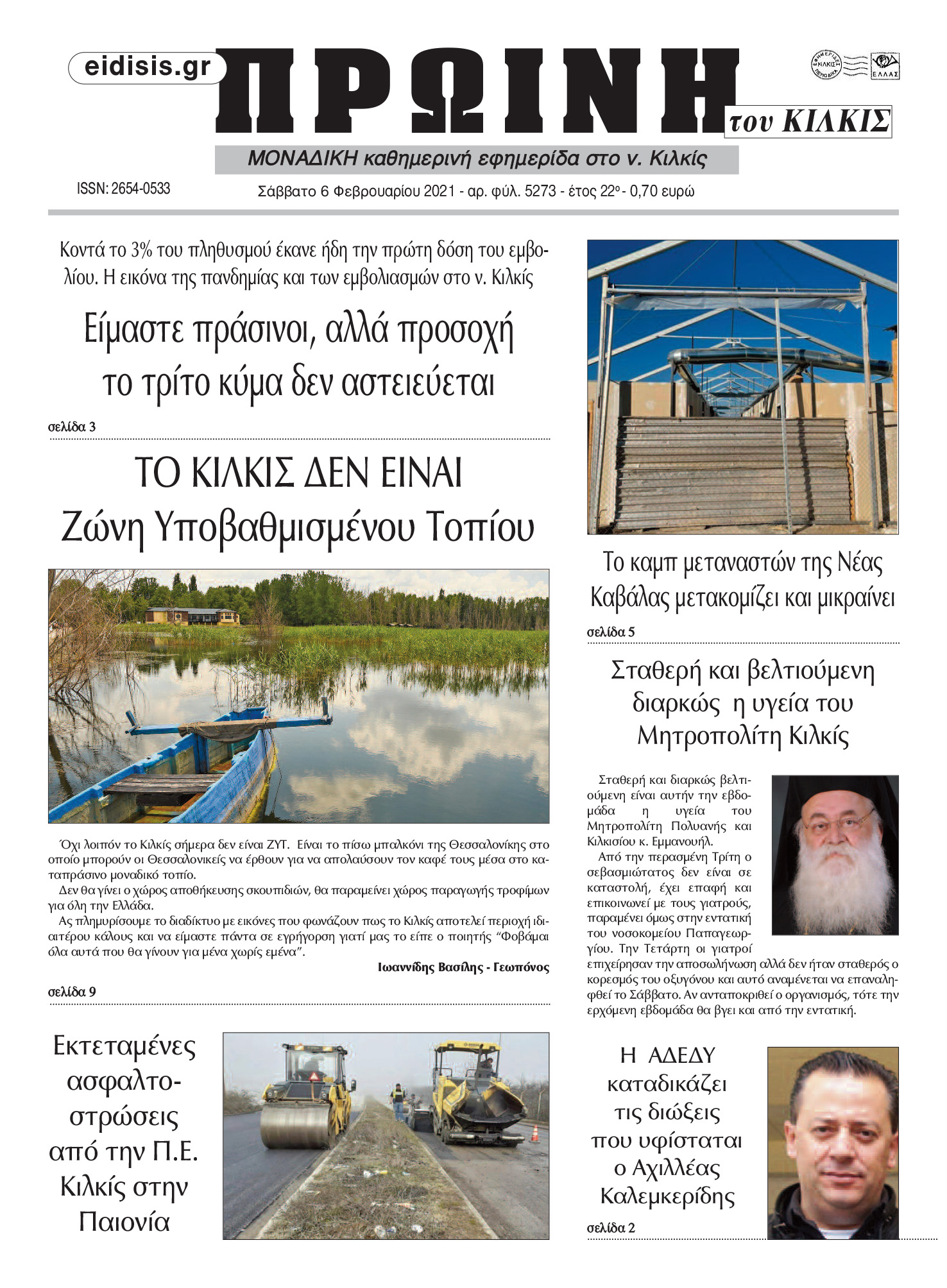 Διαβάστε το νέο πρωτοσέλιδο της Πρωινής του Κιλκίς, μοναδικής καθημερινής εφημερίδας του ν. Κιλκίς (6-2-2021)