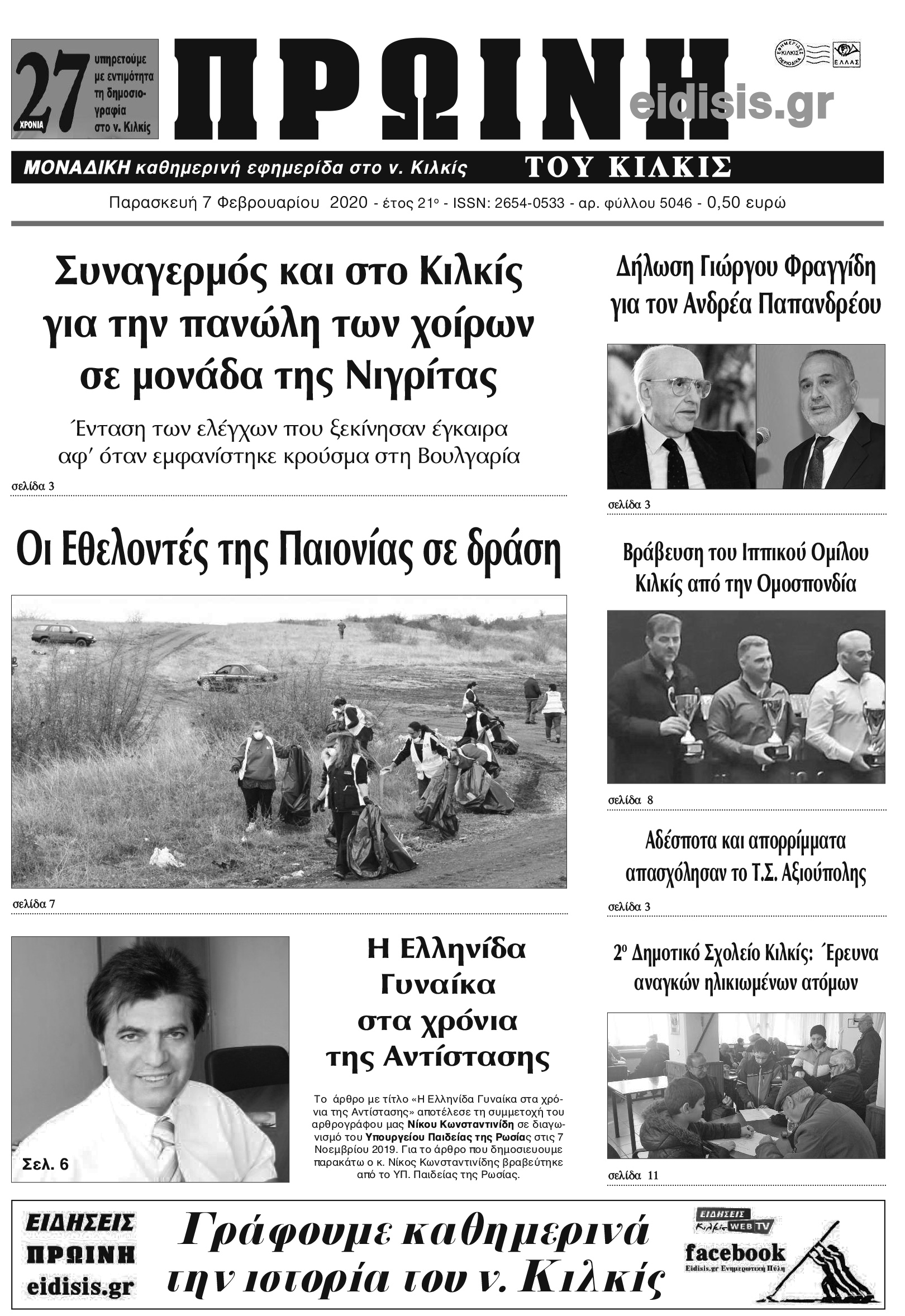 Διαβάστε το νέο πρωτοσέλιδο της Πρωινής του Κιλκίς, μοναδικής καθημερινής εφημερίδας του ν. Κιλκίς (7-2-2020)