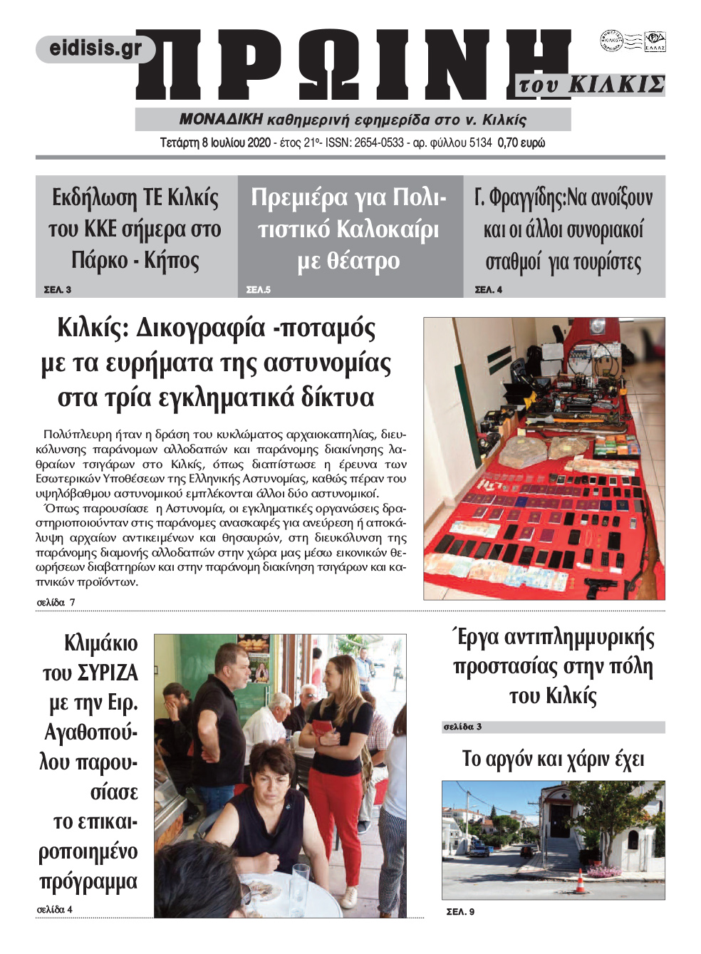 Διαβάστε το νέο πρωτοσέλιδο της Πρωινής του Κιλκίς, μοναδικής καθημερινής εφημερίδας του ν. Κιλκίς (8-7-2020)