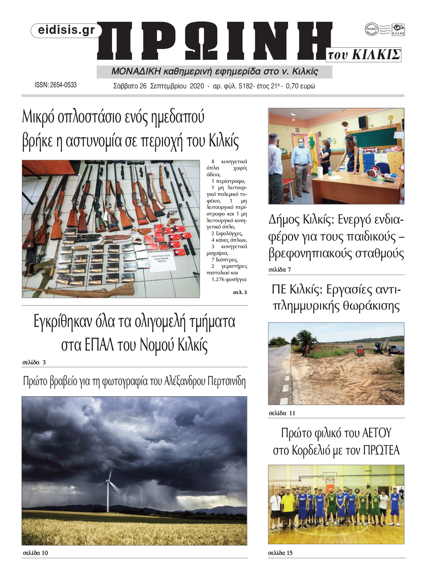 Διαβάστε το νέο πρωτοσέλιδο της ΠΡΩΙΝΗΣ του Κιλκίς, της μοναδικής καθημερινής εφημερίδας του ν. Κιλκίς (26-9-2020)