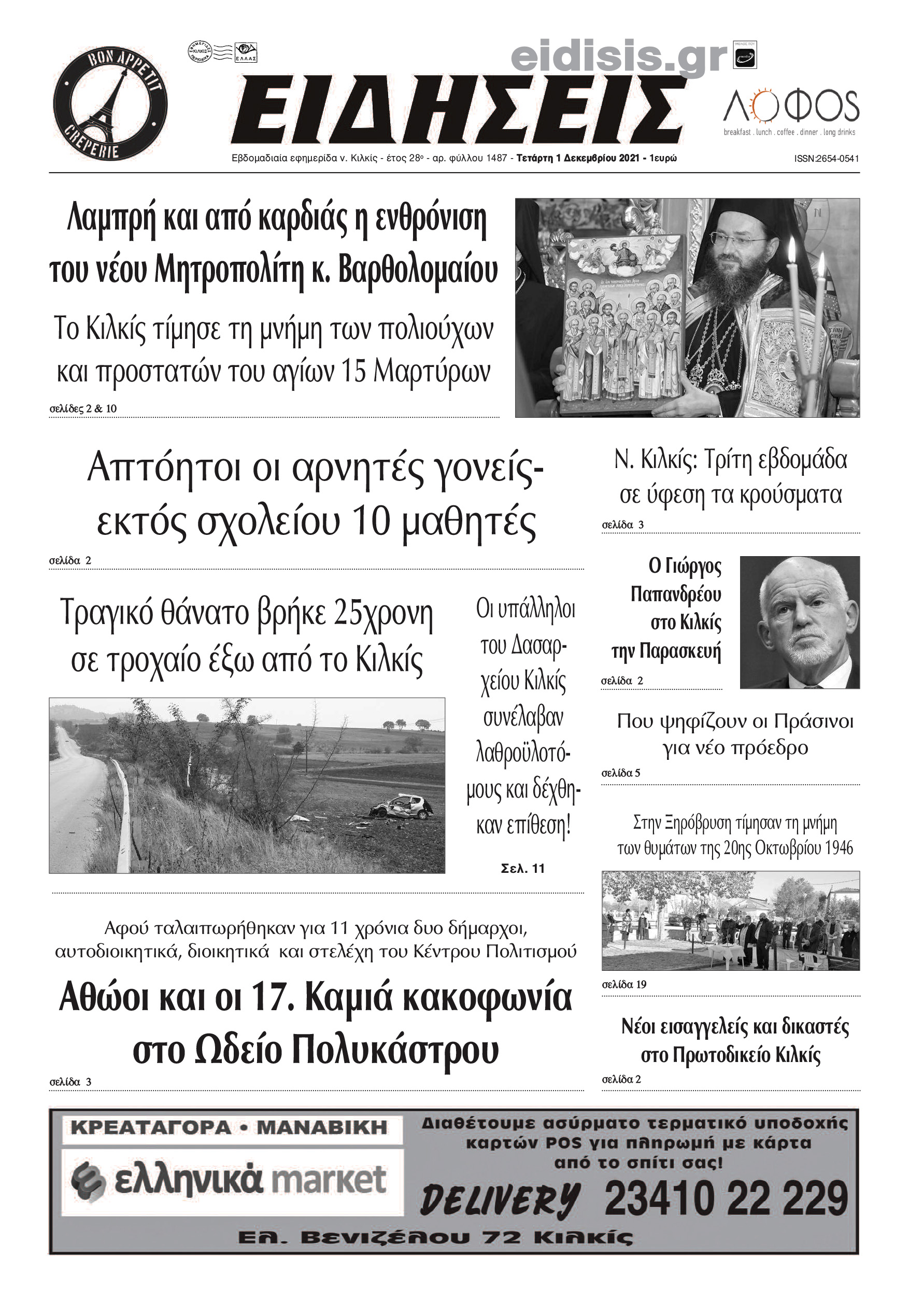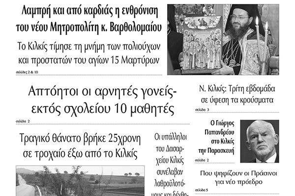 Διαβάστε το νέο πρωτοσέλιδο των ΕΙΔΗΣΕΩΝ του Κιλκίς, της εβδομαδιαίας εφημερίδας του ν. Κιλκίς (1-12-2021)