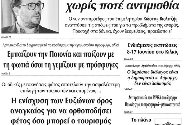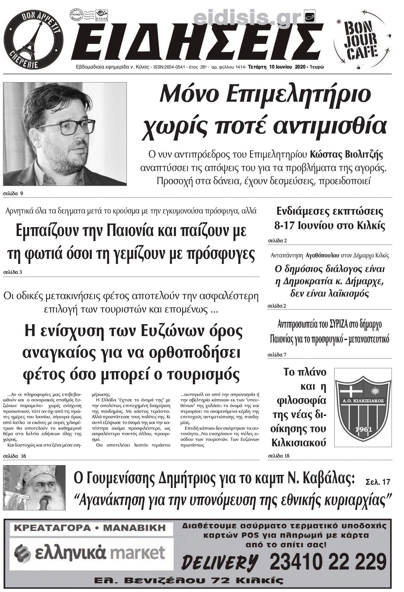 Διαβάστε το νέο πρωτοσέλιδο των ΕΙΔΗΣΕΩΝ του Κιλκίς, της εβδομαδιαίας εφημερίδας του ν. Κιλκίς (10-6-2020)