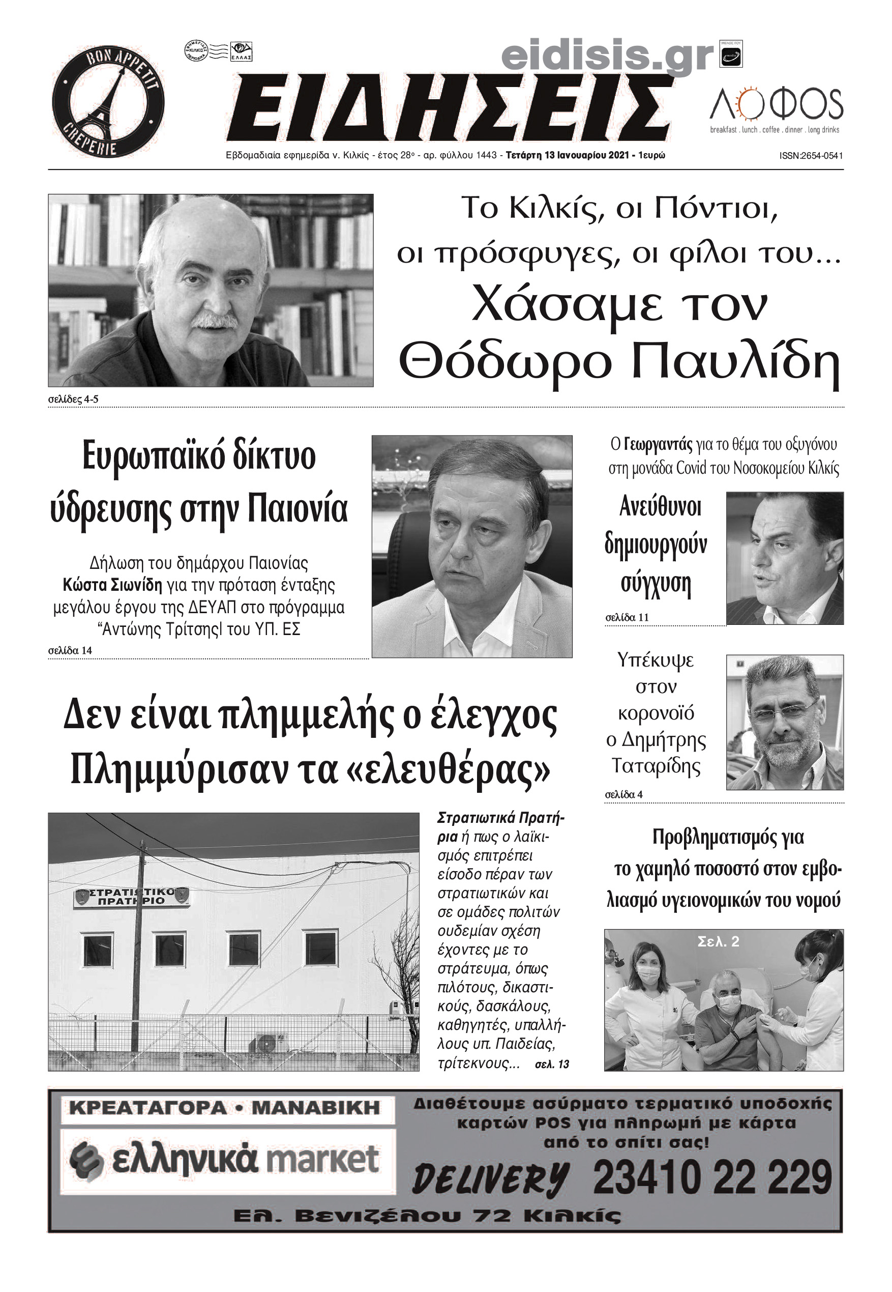 Διαβάστε το νέο πρωτοσέλιδο των ΕΙΔΗΣΕΩΝ του Κιλκίς, της εβδομαδιαίας εφημερίδας του ν. Κιλκίς (13-1-2021)
