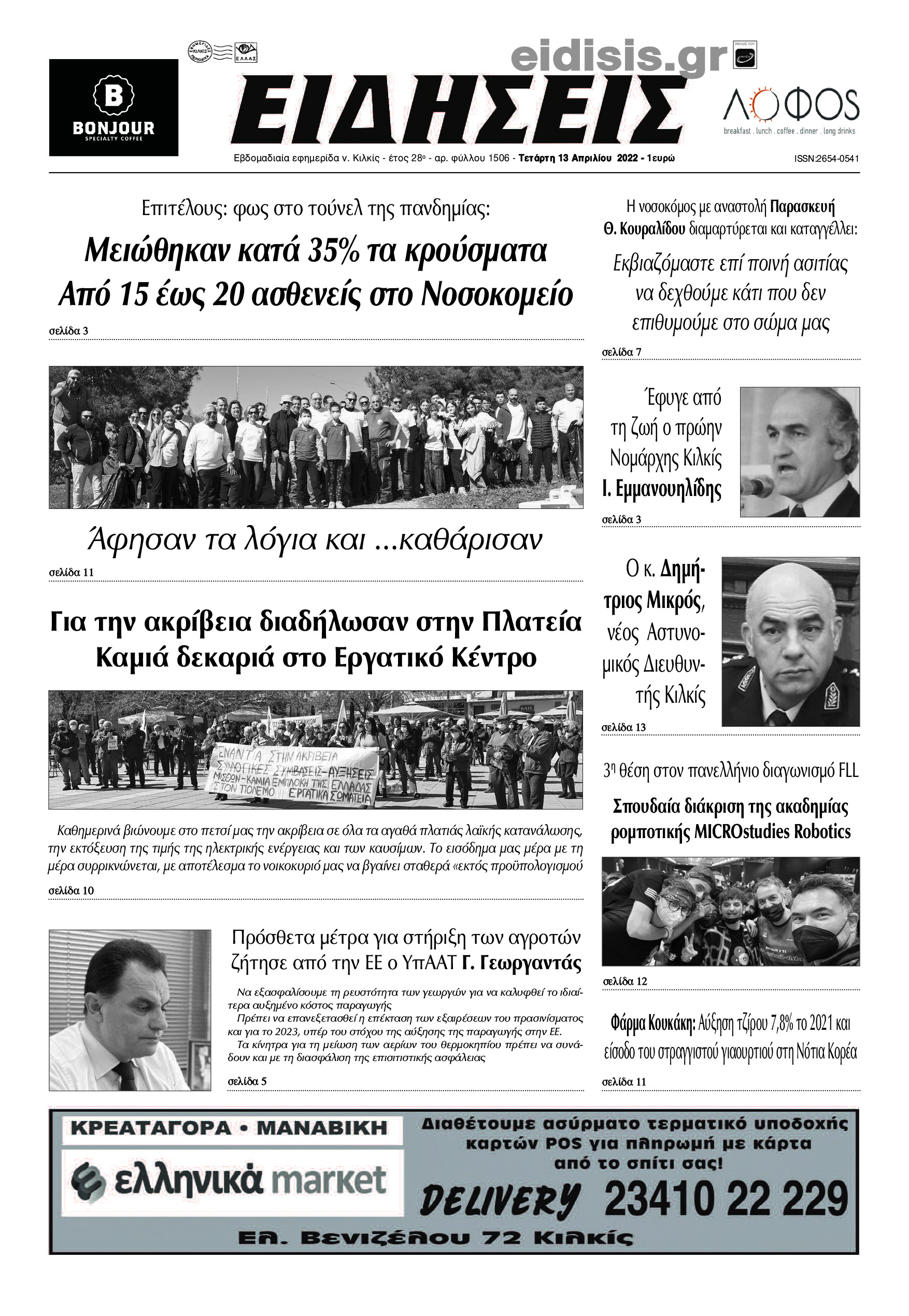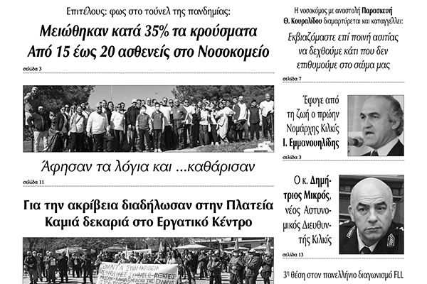 Διαβάστε το νέο πρωτοσέλιδο των ΕΙΔΗΣΕΩΝ του Κιλκίς, της εβδομαδιαίας εφημερίδας του ν. Κιλκίς (13-4-2022)