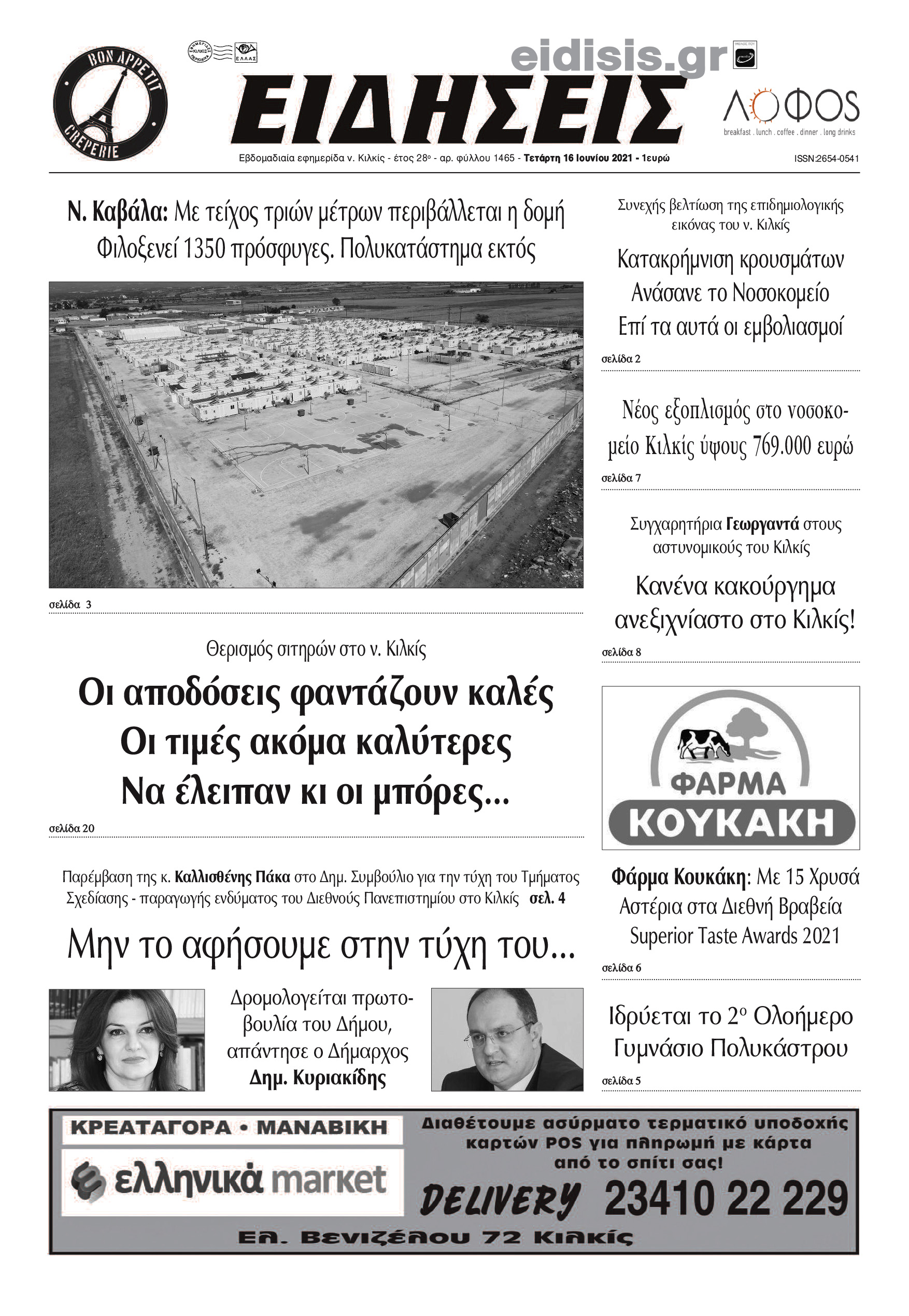 Διαβάστε το νέο πρωτοσέλιδο των ΕΙΔΗΣΕΩΝ του Κιλκίς, της εβδομαδιαίας εφημερίδας του ν. Κιλκίς (16-6-2021)