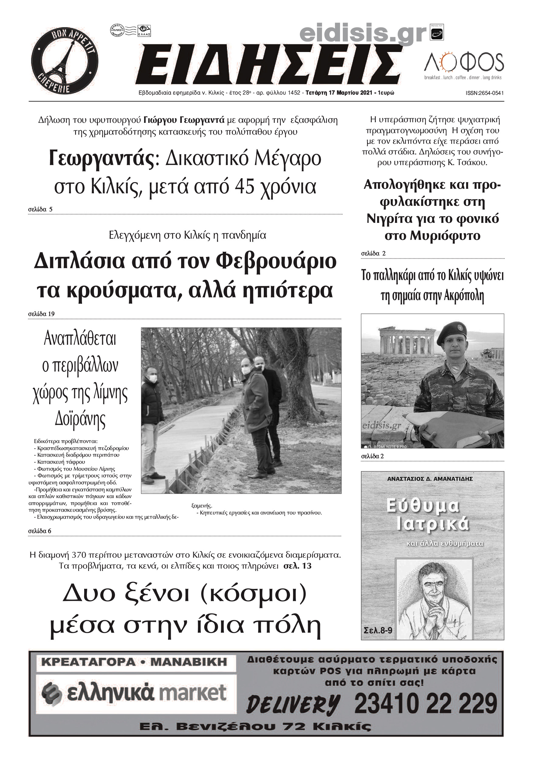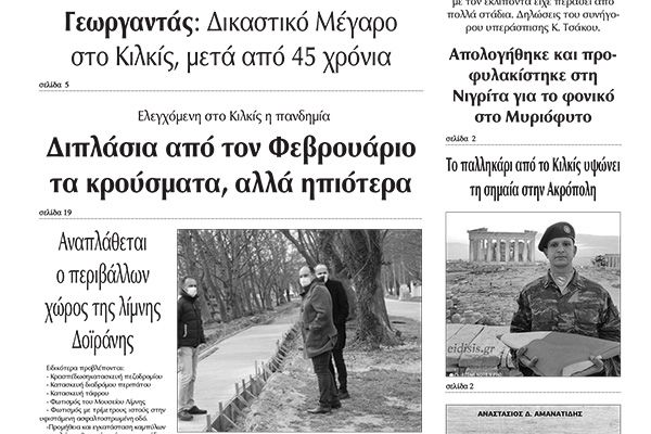 Διαβάστε το νέο πρωτοσέλιδο των ΕΙΔΗΣΕΩΝ του Κιλκίς, της εβδομαδιαίας εφημερίδας του ν. Κιλκίς (17-3-2021)