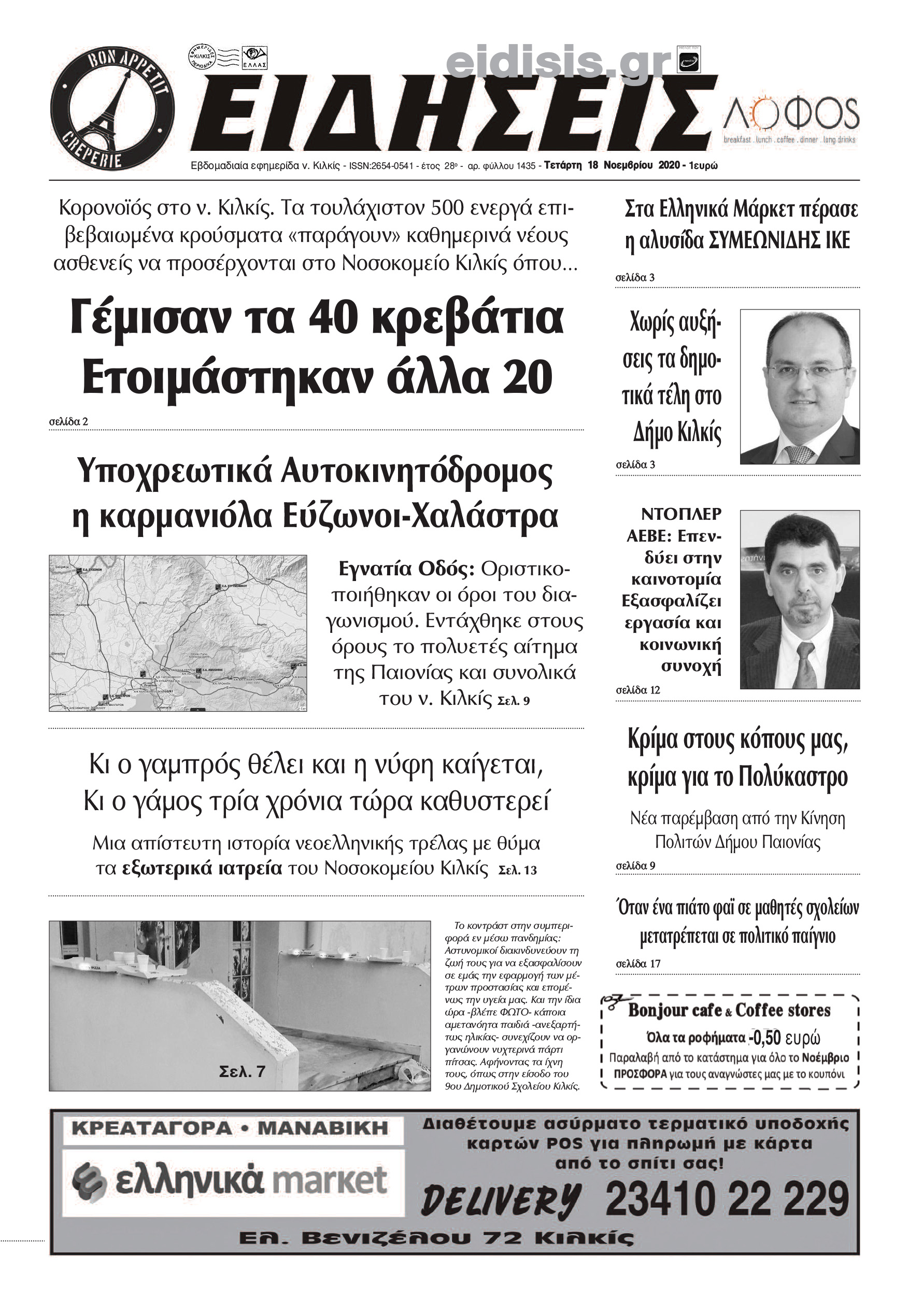 Διαβάστε το νέο πρωτοσέλιδο των ΕΙΔΗΣΕΩΝ του Κιλκίς, της εβδομαδιαίας εφημερίδας του ν. Κιλκίς (18-11-2020)