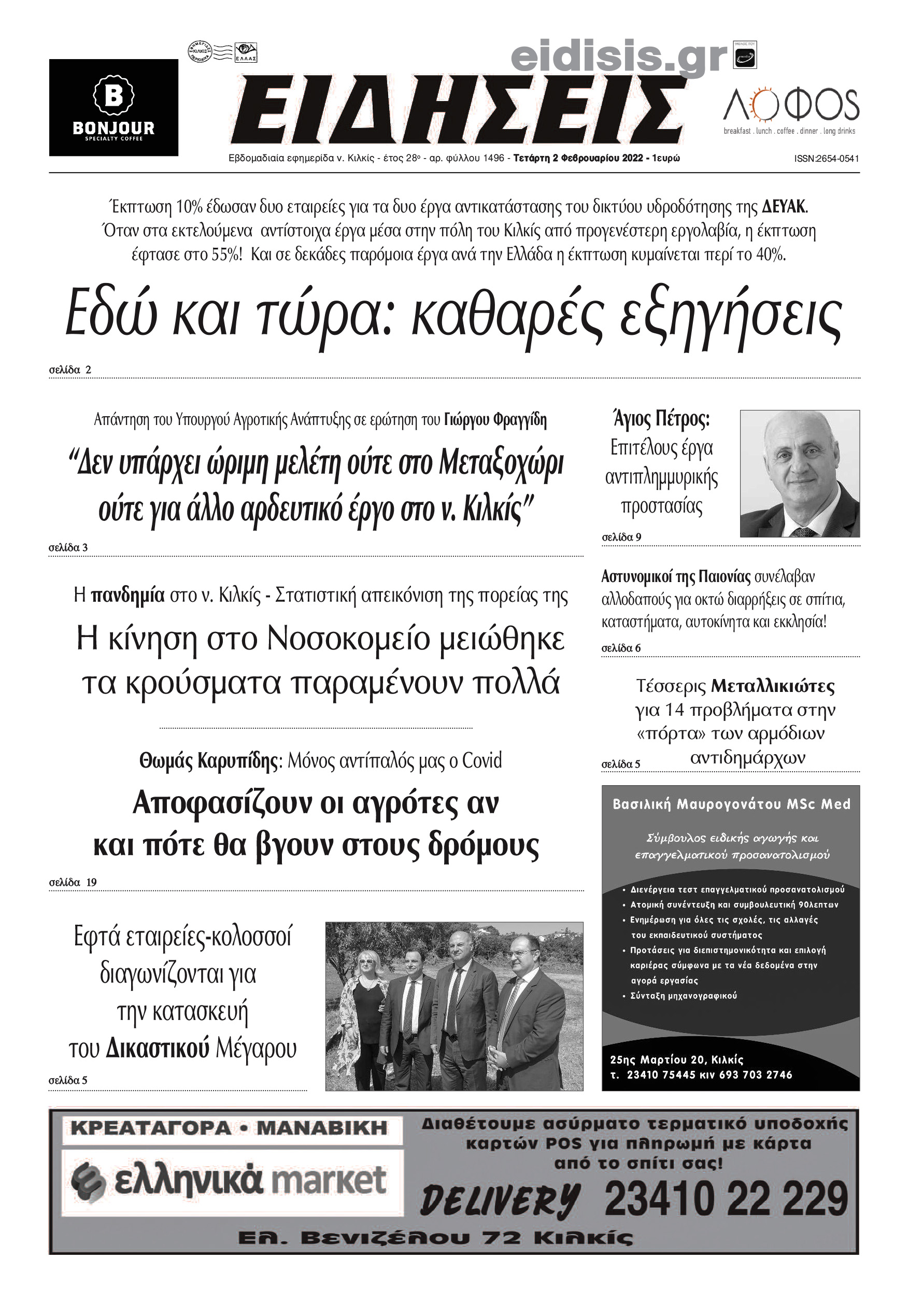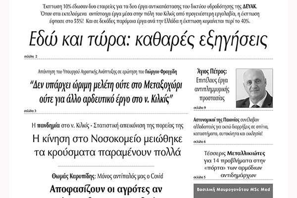 Διαβάστε το νέο πρωτοσέλιδο των ΕΙΔΗΣΕΩΝ του Κιλκίς, της εβδομαδιαίας εφημερίδας του ν. Κιλκίς (2-2-2022)