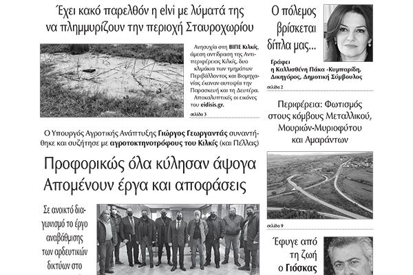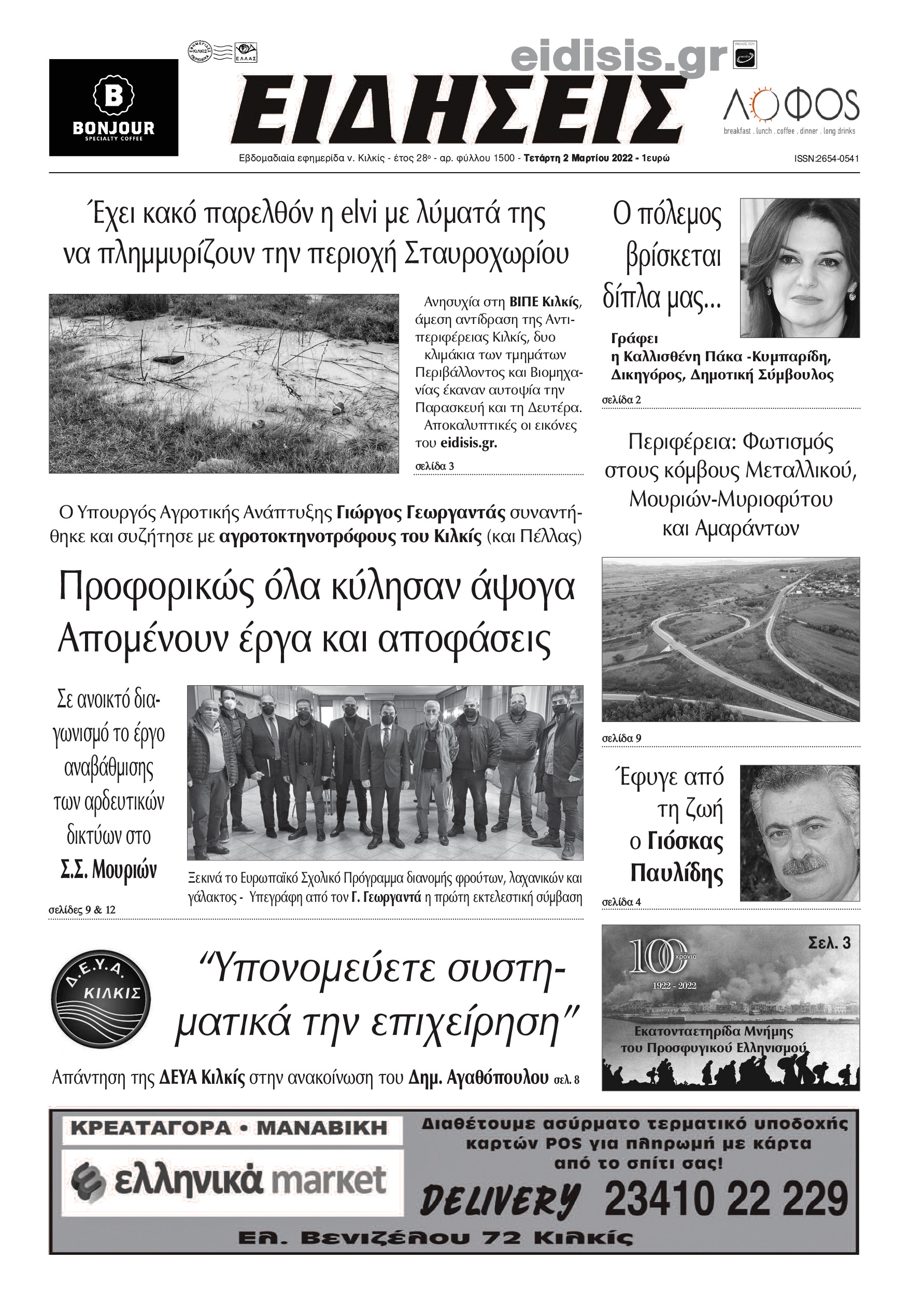 Διαβάστε το νέο πρωτοσέλιδο των ΕΙΔΗΣΕΩΝ του Κιλκίς, της εβδομαδιαίας εφημερίδας του ν. Κιλκίς (2-3-2022)