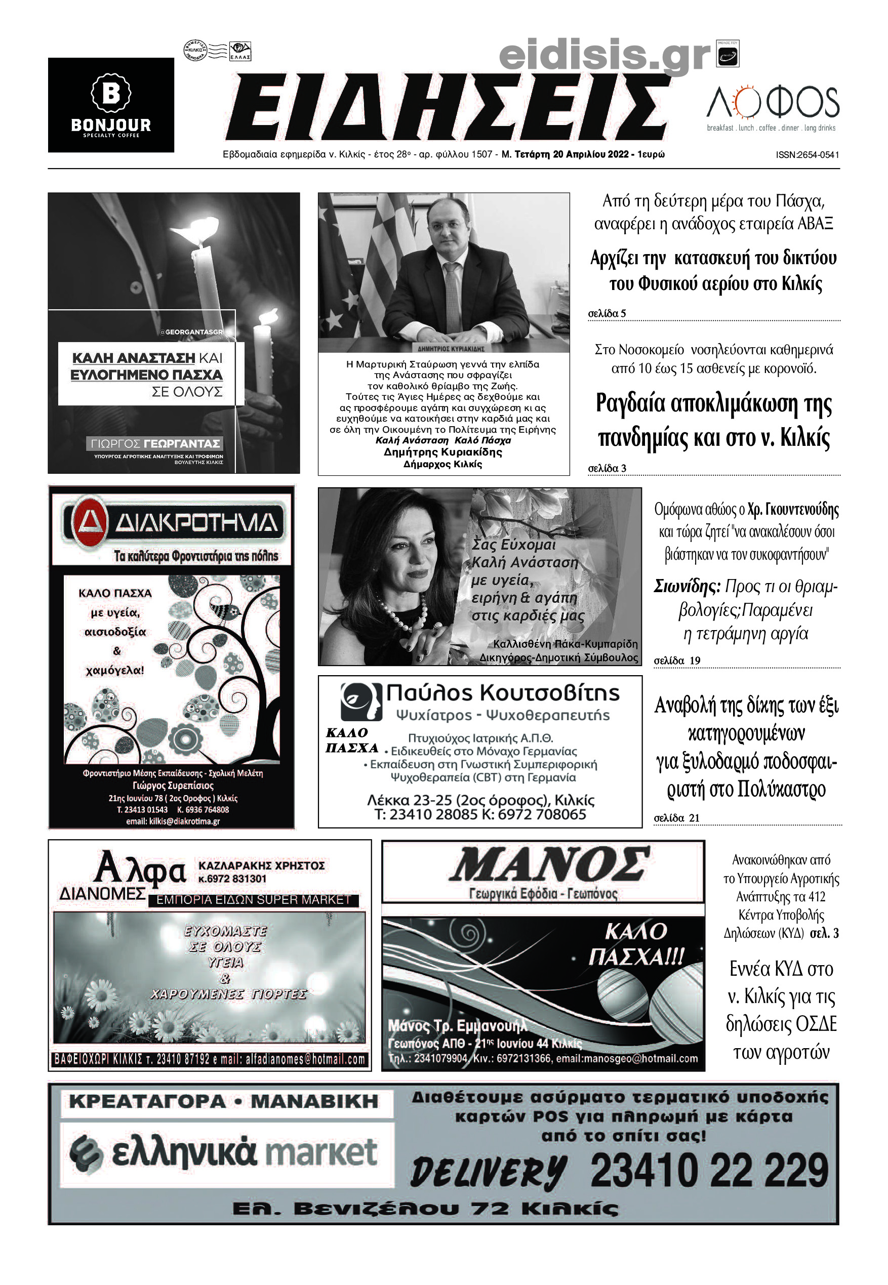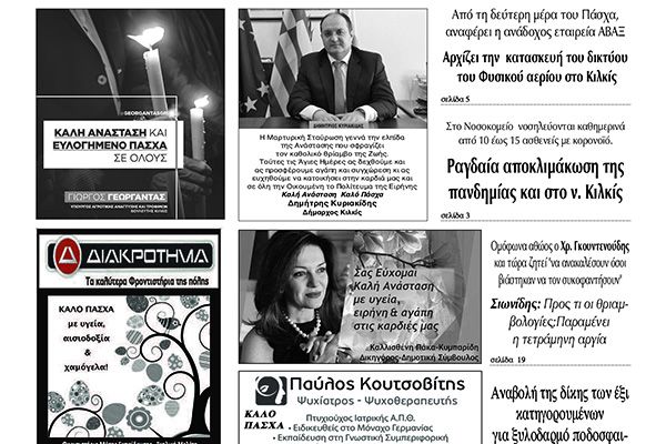 Διαβάστε το νέο πρωτοσέλιδο των ΕΙΔΗΣΕΩΝ του Κιλκίς, της εβδομαδιαίας εφημερίδας του ν. Κιλκίς (20-4-2022)