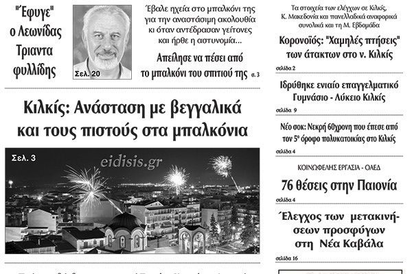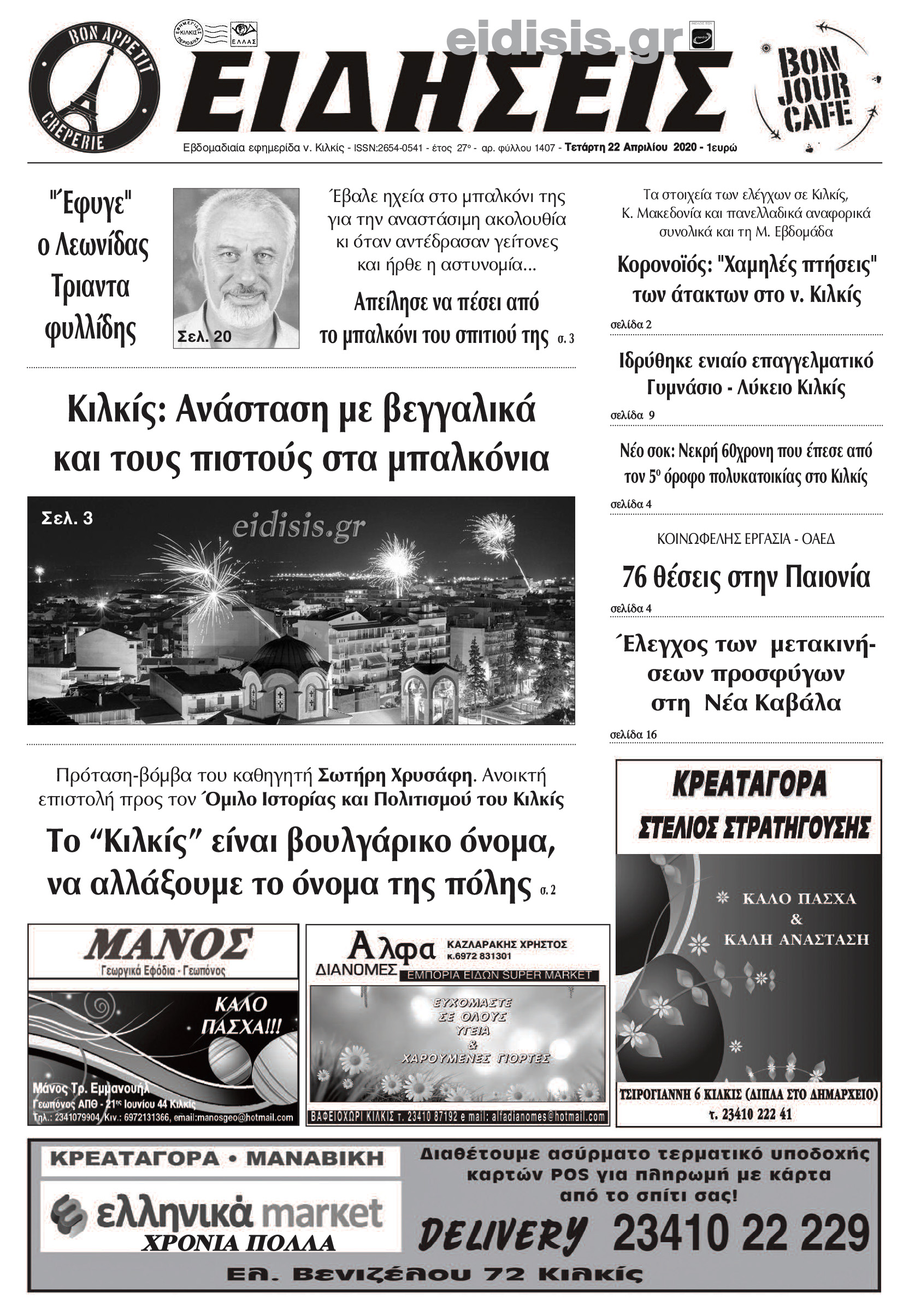Διαβάστε το νέο πρωτοσέλιδο των ΕΙΔΗΣΕΩΝ του Κιλκίς, της εβδομαδιαίας εφημερίδας του ν. Κιλκίς (22-4-2020)
