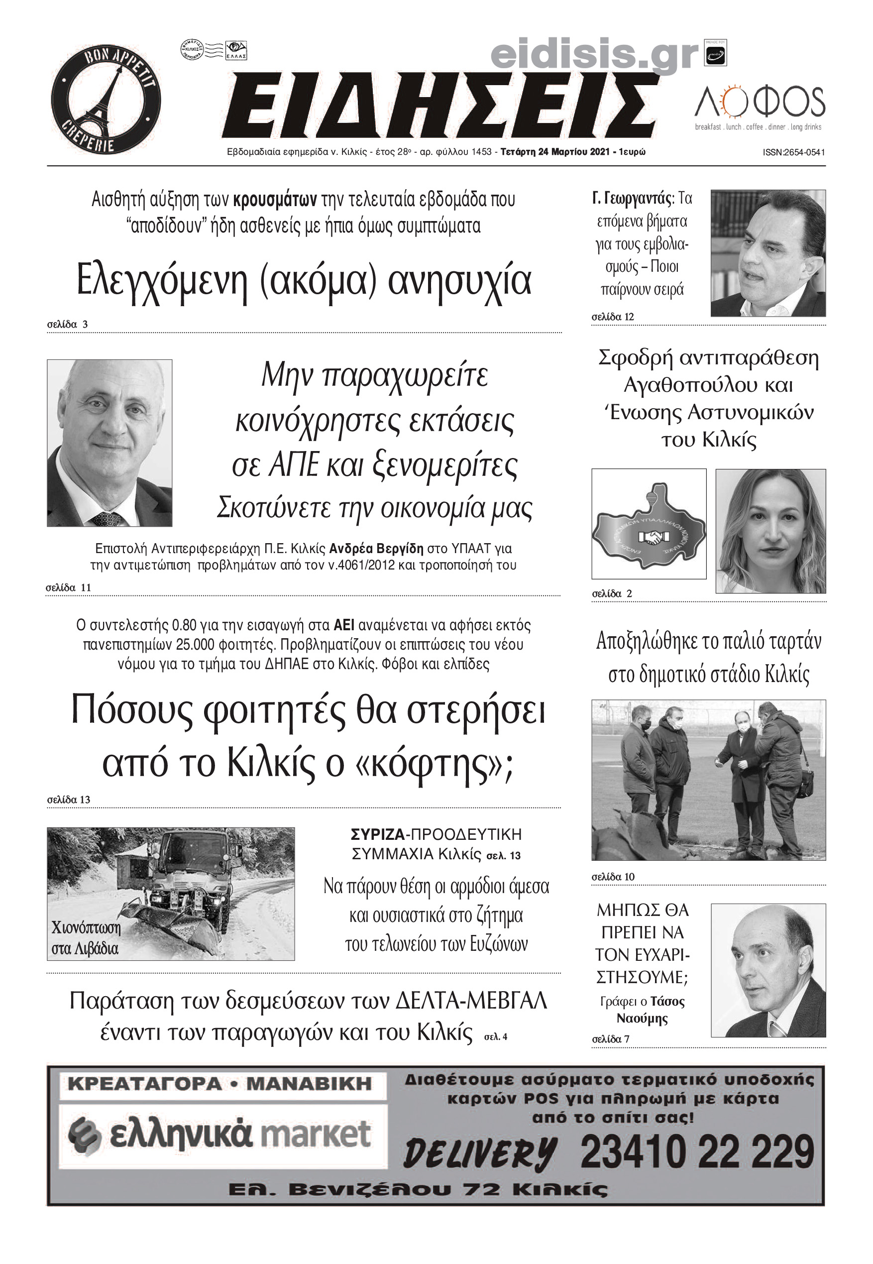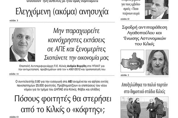 Διαβάστε το νέο πρωτοσέλιδο των ΕΙΔΗΣΕΩΝ του Κιλκίς, της εβδομαδιαίας εφημερίδας του ν. Κιλκίς (24-3-2021)