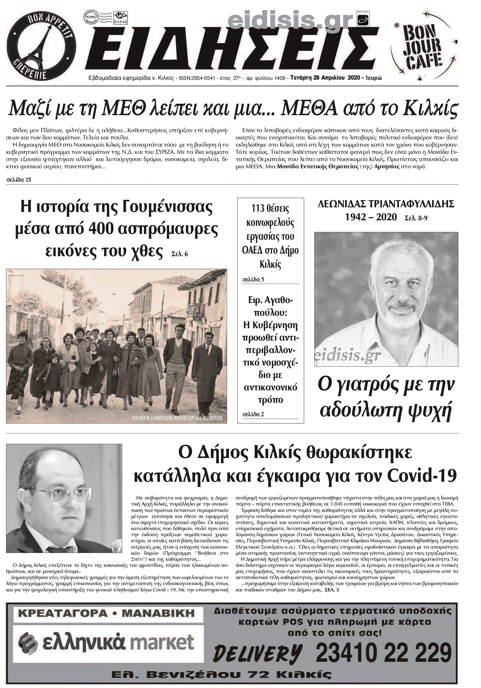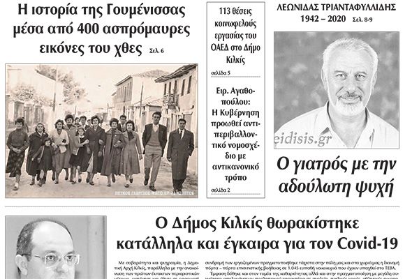Διαβάστε το νέο πρωτοσέλιδο των ΕΙΔΗΣΕΩΝ του Κιλκίς, της εβδομαδιαίας εφημερίδας του ν. Κιλκίς (29-4-2020)