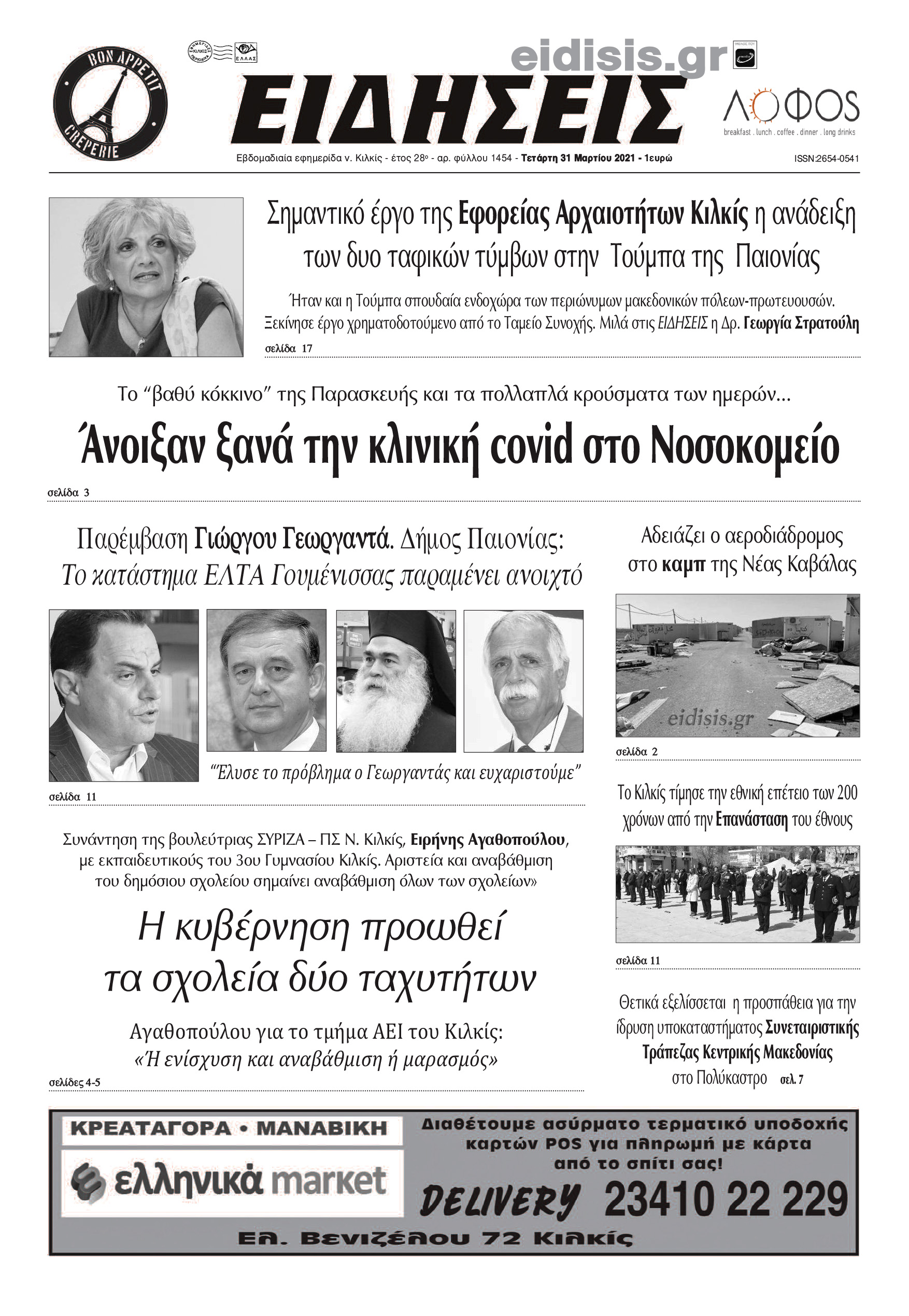 Διαβάστε το νέο πρωτοσέλιδο των ΕΙΔΗΣΕΩΝ του Κιλκίς, της εβδομαδιαίας εφημερίδας του ν. Κιλκίς (31-3-2021)