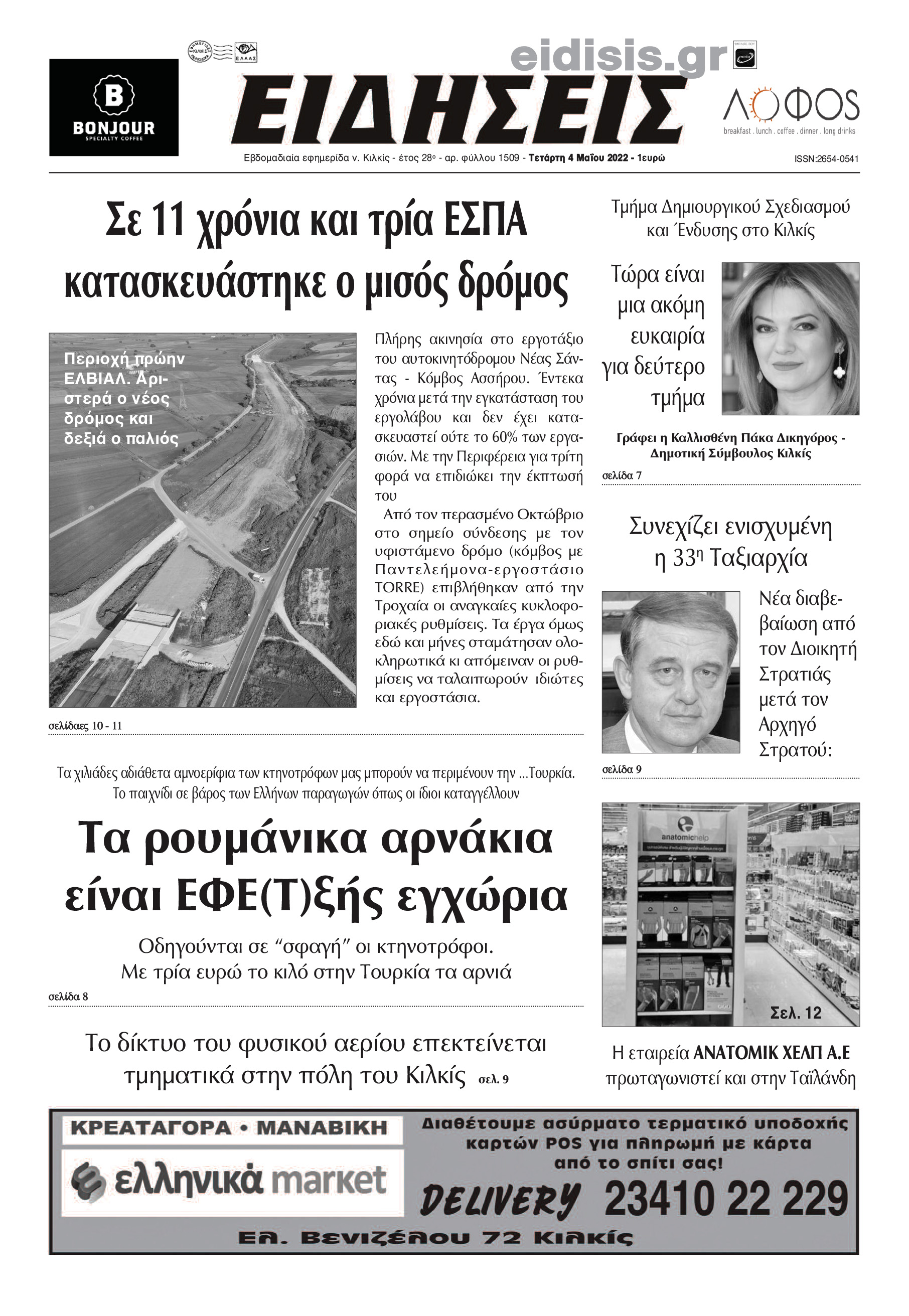 Διαβάστε το νέο πρωτοσέλιδο των ΕΙΔΗΣΕΩΝ του Κιλκίς, της εβδομαδιαίας εφημερίδας του ν. Κιλκίς (4-5-2022)