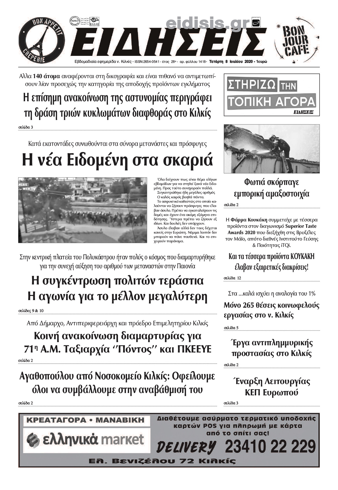 Διαβάστε το νέο πρωτοσέλιδο των ΕΙΔΗΣΕΩΝ του Κιλκίς, της εβδομαδιαίας εφημερίδας του ν. Κιλκίς (8-7-2020)