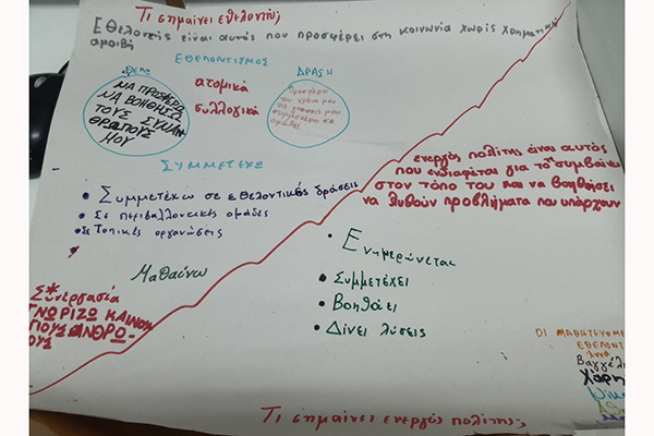 Πρόκειται για τον όμιλο Εθελοντισμού και Ενεργού Πολιτειότητας, που συντονίζει η Αφροδίτη Ντίνου και συνεργάζονται οι: Έλλη Κεσίδου, Κατερίνα Μπόσκου και Νίκη Παυλίδου. Οι συναντήσεις γίνονται μια φορά την εβδομάδα, 13:30-15:00. Ο όμιλος διαπραγματεύεται θέματα όπως η προστασία του Περιβάλλοντος, η Κλιματική Αλλαγή, η ανιδιοτελής προσφορά στους έχοντες ανάγκη, η ενδυνάμωση και η διαμόρφωση ενεργών πολιτών, που ενδιαφέρονται, συνεργάζονται και δημιουργούν, για ένα καλύτερο αύριο.