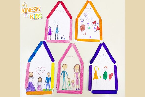 Ένα διαφορετικό και πρωτότυπο μάθημα ζωγραφικής πραγματοποιήθηκε με θέμα την οικογένεια στο ΚΔΑΠ Kinesis. Αυτήν τη φορά σχεδιάσαμε πάνω σε ριζόχαρτο ένα σπιτάκι, όπου μέσα σε αυτό ζωγραφίσαμε τα μέλη της δικής μας οικογένειας. Κολλήσαμε έπειτα χρωματιστά ξύλινα γλωσσοπίεστρα πάνω στο χαρτί ώστε να σχηματίσουμε το σπίτι μας. Το καδράκι με την οικογένεια μας είναι πανέμορφο και θα το στολίσουμε σίγουρα στο σπίτι μας