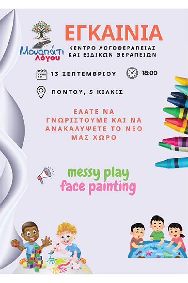 Τα εγκαίνια του Κέντρου Λογοθεραπείας «Μονοπάτι του Λόγου» της Καλλιόπης - Βαρβάρας Ιορδανίδου θα πραγματοποιηθούν το Σάββατο 13 Σεπτεμβρίου, στις 18:00 στην οδό Πόντου 5 στο Κιλκίς.