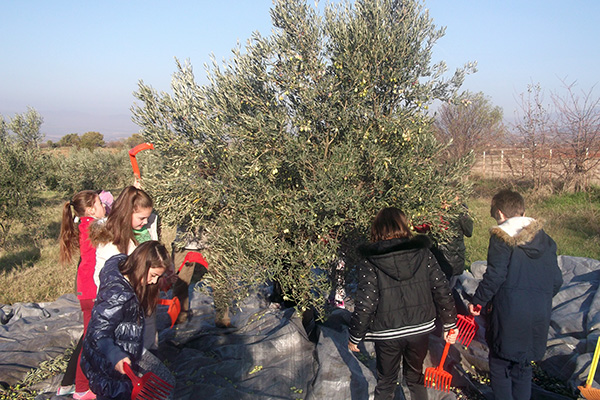 Σε διαφορετικό πλαίσιο κινήθηκε η εκπαιδευτική εξόρμηση της Δ΄ Τάξης στον ελαιώνα του κου Δημήτρη Διαμαντίδη στην Πλαγιά Κιλκίς. Η εξόρμηση ήταν ενταγμένη στο πλαίσιο του προγράμματος «Το αμπέλι και η ελιά, μέσα από την τέχνη» που η Τάξη υλοποιεί τη Σχολική χρονιά 2016-2017. Τα παιδιά εισήλθαν στον ελαιώνα χορεύοντας και τραγουδώντας τραγούδια για την ελιά. Εκεί ο κος Διαμαντίδης τους έδωσε τα απαραίτητα εργαλεία για τη συγκομιδή, ενώ τα παιδιά τον βοήθησαν να απλώσει τα ελαιόπανα. Ακλούθησε εργασία απ΄ όλους έτσι ώστε οι μαθητές να αντιληφθούν πώς συλλέγεται ο καρπό της ελιάς, ενώ στο τέλος όλοι γεύτηκαν τους καρπούς των κόπων τους. Η ενδιαφέρουσα εξόρμηση τελείωσε όπως άρχισε, με χορό και τραγούδι.
