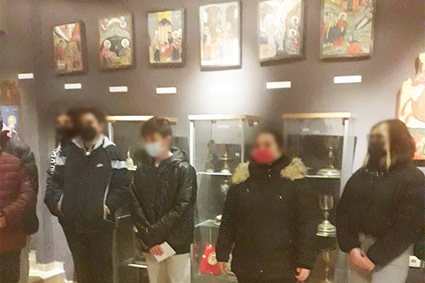 Στο χώρο μας περίμεναν ο πατήρ Επιφάνιος, καθώς και ο πατήρ Χριστόφορος με καταγωγή από την Ουγκάντα. Θαυμάσαμε τους μοναδικούς θρησκευτικούς θησαυρούς που υπάρχουν εκεί, όπως εικόνες, εκκλησιαστικά σκεύη, Ευαγγέλια, άμφια κ.α. Ιδιαίτερη εντύπωση μας έκανε η απεικόνιση της Δευτέρας Παρουσίας σε μία εικόνα. Είναι ένα αριστούργημα που συμβολίζει τον παράδεισο και τι πρόκειται να γίνει κατά τη Δευτέρα Παρουσία, σύμφωνα με την Ορθόδοξη θρησκεία.