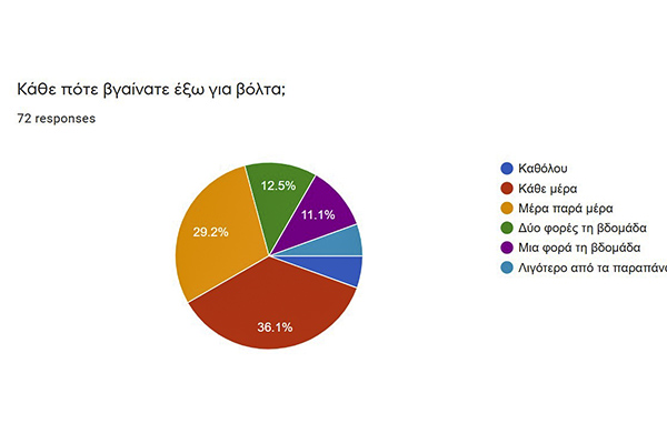 Οι περισσότεροι έβγαιναν έξω κάθε μέρα ή κάθε δύο μέρες, ενώ το 35% δήλωσε ότι είχε στο σπίτι του αυλή που μπορούσε να χρησιμοποιήσει για παιχνίδι.