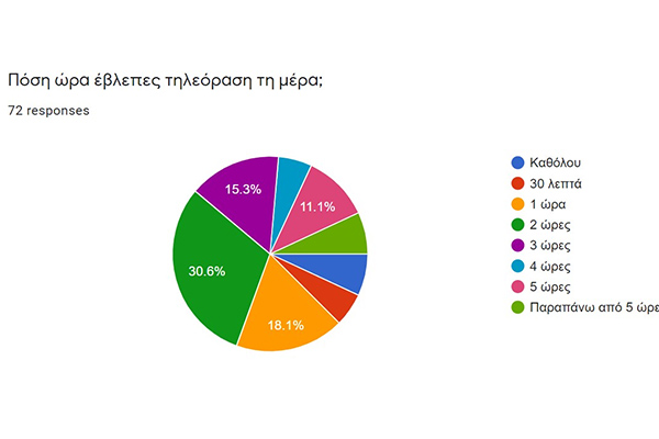 Συμπεράσματα: Αν προσθέσουμε τις ώρες που αφιέρωναν τα παιδιά για εργασία και διασκέδαση σε ηλεκτρονικές συσκευές, συμπεράνουμε ότι γύρω στις 9-10 ώρες καθημερινά τα παιδιά βρίσκονταν μπροστά σε μια οθόνη, ενώ τους έλλειψε η άσκηση και διαταράχθηκαν οι υγιεινές συνήθειες του ύπνου. Όμως διατήρησαν τις φιλίες και την επικοινωνία τους με τους άλλους ενώ εκτίμησαν το σχολείο και όσα αυτό τους προσφέρει.