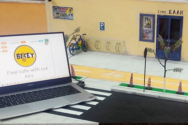 Αξιοποιώντας έρευνα για τη διαδεδομένη χρήση του ποδηλάτου την περίοδο της πανδημίας, τα παιδιά σκέφτηκαν τρόπους για την ασφάλεια του εναλλακτικού μέσου μεταφοράς από πιθανή κλοπή. Σε μια επιφάνεια που αναπαριστά μια αστική περιοχή κατασκεύασαν χώρους στάθμευσης των ποδηλάτων και εξήγησαν στους επισκέπτες τους, δείχνοντας τους τα μικροσκοπικά συστήματα, πως με έναν κωδικό που θα ορίσει