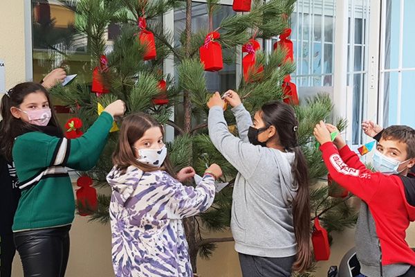 Στο τέλος της δραστηριότητας, οι ανθρώπινες αξίες γράφτηκαν επάνω σε καραβάκια και κρεμάστηκαν στο Χριστουγεννιάτικο δέντρο του Σχολείου.