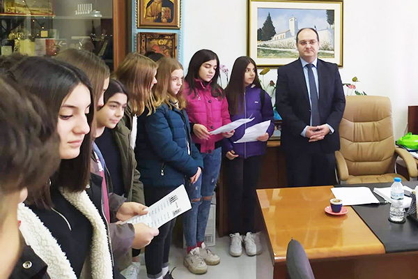 Η χορωδία του 3ου Γυμνασίου τα έψαλε στο δήμαρχο Κιλκίς
