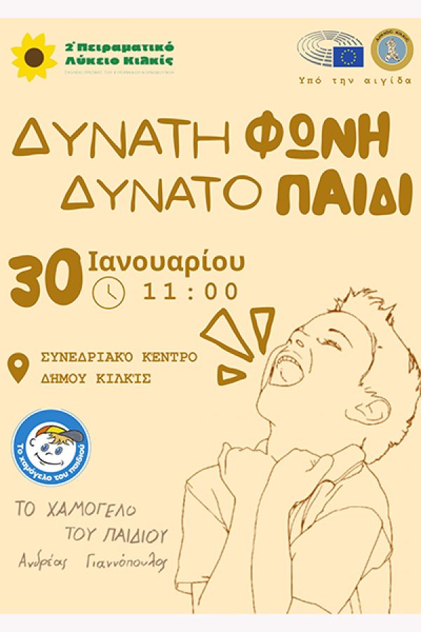 Η εκδήλωση με τίτλο «Δυνατή Φωνή Δυνατό Παιδί» θα πραγματοποιηθεί την Παρασκευή 30 Ιανουαρίου 2026, στις 11:00 π.μ., στο Συνεδριακό Κέντρο του Δήμου Κιλκίς και θα έχει διάρκεια περίπου δύο ώρες.