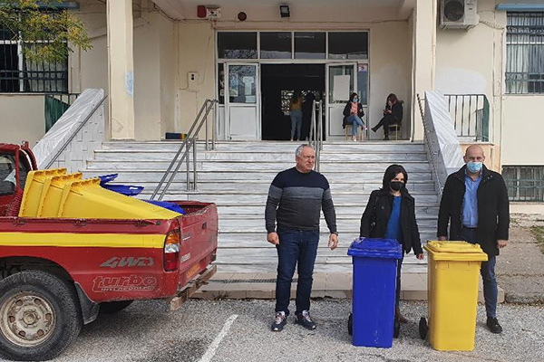 Κάδοι ανακύκλωσης, κίτρινοι για τη συλλογή χαρτιού και έντυπου υλικού και μπλε για τη συλλογή πλαστικών και μετάλλων τοποθετήθηκαν αυτές τις μέρες στις σχολικές αυλές όλων των Γυμνασίων και Λυκείων του Δήμου Κιλκίς ως επίσης και στο Εργαστηριακό Κέντρο, στο Ενιαίο Ειδικό Επαγγελματικό Γυμνάσιο – Λύκειο και στο Ειδικό Εργαστήριο Επαγγελματικής Εκπαίδευσης και Κατάρτισης. Διανεμήθηκαν συνολικά σαράντα έξι κάδοι ανακύκλωσης.