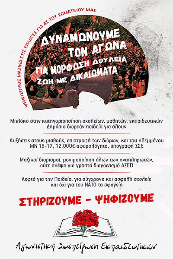 Κάνουμε τώρα το βήμα μαζί με την «Αγωνιστική Συσπείρωση Εκπαιδευτικών» για μόρφωση, δουλειά, ζωή με δικαιώματα, για: