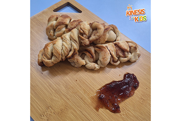 Στην αγαπημένη μας μαγειρική φτιάξαμε μια γλυκιά λιχουδιά· κρουασανάκια με μαρμελάδα κεράσι. Αφού φτιάξαμε το ζυμάρι, βάλαμε τη γέμιση και τα πλέξαμε ώστε να αποκτήσουν κι ένα όμορφο ξεχωριστό σχήμα. Σύντομα ήταν έτοιμα και εμείς ανυπομονούσαμε να δοκιμάσουμε τη νοστιμιά που δημιουργήσαμε.