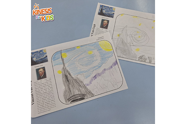 Στο μάθημα ζωγραφικής μιλήσαμε για τον ζωγράφο Vincent Van Gogh μαθαίνοντας βασικές πληροφορίες για τη ζωή του κι έπειτα αφού συζητήσαμε για τον γνωστό του πίνακα «Έναστρη νύχτα» προσπαθήσαμε να το αποτυπώσουμε όπως ο καθένας μπορούσε.