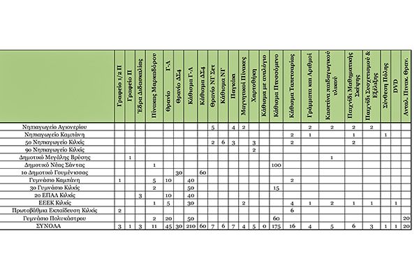 Τα παρακάτω 13 σχολεία Νηπιαγωγεία, Δημοτικά, Γυμνάσια και Λύκεια ενισχύθηκαν μέχρι σήμερα σε όλη την Π.Ε. Κιλκίς.