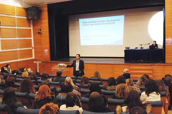 Την Ημερίδα διοργάνωσαν η Σχολική Σύμβουλος Προσχολικής Εκπαίδευσης, ο Διευθυντής της Διεύθυνσης Α/θμιας Εκπαίδευσης Κιλκίς σε συνεργασία με την Σχολική Σύμβουλο 7ης Περιφέρειας Ειδικής Αγωγής και Εκπαίδευσης και με την υποστήριξη του Συλλόγου Εκπαιδευτικών Πρωτοβάθμιας Εκπαίδευσης Κιλκίς και του Δήμου Κιλκίς. Κεντρικός ομιλητής της Ημερίδας, ο καθηγητής Σπύρος Σούλης του Π.Τ.Δ.Ε. του Πανεπιστημίου Ιωαννίνων με θέμα: «Ένα νηπιαγωγείο για Όλους: Θέση-Αντίθεση-Σύνθεση». Η μακρόχρονη ενασχόλησή του με το αντικείμενο, ο τρόπος επικοινωνίας του με τους/τις συμμετέχοντες/σσες και η συζήτηση που προκλήθηκε συνέβαλε στην κατανόηση ζητημάτων που σχετίζονται με την συνεκπαίδευση και την προοπτική της. Προηγήθηκε εισήγηση του Διευθυντή Πρωτοβάθμιας Εκπαίδευσης Κιλκίς, κ. Άρη Παπαδόπουλου. Στην συνέχεια παρουσιάστηκε πρόταση Προγράμματος Συνεκπαίδευσης με Νηπιαγωγεία του Κέντρου Κοινωνικής Στήριξης από την κ. Γεωργία Κυρλαγκίτση, ψυχολόγο, διοικητική διευθύντρια και το επιστημονικό προσωπικό του Κ.Κ.Σ. Ακολούθησαν παρουσιάσεις δράσεων και προγραμμάτων συνεκπαίδευσης από νηπιαγωγούς του Ειδικού Νηπιαγωγείου Κιλκίς και των Νηπιαγωγείων Ν. Σάντας, 1ου Νηπιαγωγείου Αξιούπολης, 3ου και 4ου Νηπιαγωγείου Κιλκίς.