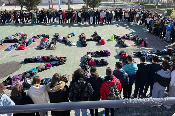 Όπως είχαμε γράψει, λίγα μέτρα πιο εκεί, οι μαθητές του 2ου Πειραματικού Γυμνασίου Κιλκίς έστειλαν το δικό τους μοναδικό μήνυμα για τον αδικοχαμένο Άλκη. Γροθιά στο στομάχι η εικόνα από την αυλή του σχολείου για τον 23χρονο Άλκη. Μαθητές και μαθήτριες σχημάτισαν με τις τσάντες τους ένα τεράστιο σύνθημα, ένα σύνθημα Ζωής και Συγγνώμης ταυτόχρονα, για τον τόσο άδικο χαμό ενός νέου παιδιού.