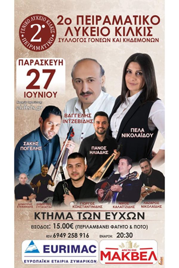 Ο ετήσιος σχολικός χορός που διοργανώνει ο Σύλλογος Γονέων και Κηδεμόνων του 2ου Πειραματικού Λυκείου Κιλκίς πραγματοποιείται την Παρασκευή 27 Ιουνίου, και ώρα 20.30 στο Κτήμα των ευχών.