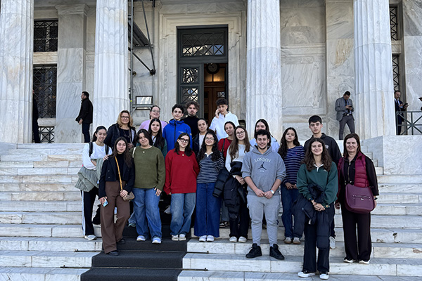 Κατά τη διάρκεια της επίσκεψης στη Βουλή των Ελλήνων, οι μαθητές/τριες, αφού ξεναγήθηκαν στους χώρους της Βουλής και ενημερώθηκαν για την πλούσια ιστορία του κτιρίου, είχαν την ιδιαίτερη τιμή να συνομιλήσουν με τον Αντιπρόεδρο Β΄ της Βουλής των Ελλήνων, κ. Γεώργιο Γεωργαντά, ο οποίος τους ενημέρωσε για τον ρόλο και τη λειτουργία του Κοινοβουλίου, καθώς και για τη σημασία της δημοκρατικής συμμετοχής και του κοινοβουλευτικού διαλόγου, αλλά και για το μέλλον, που διαμορφώνουν οι ίδιοι με τις επιλογές και τα όνειρά τους, ενώ τους υποσχέθηκε πως θα είναι αρωγός σε κάθε προσπάθεια του σχολείου.