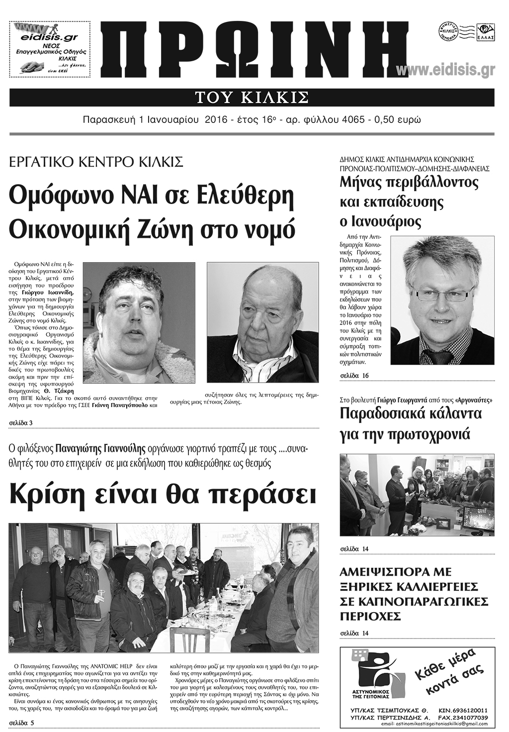 Πέντε χρόνια πριν. Διαβάστε τι έγραφε η καθημερινή εφημερίδα ΠΡΩΙΝΗ του Κιλκίς (1-1-2016)