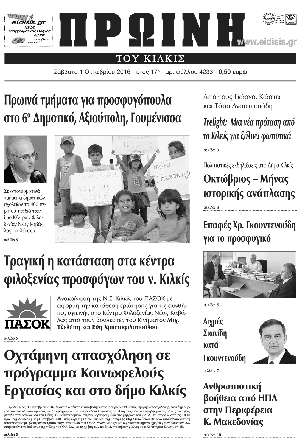 Πέντε χρόνια πριν. Διαβάστε τι έγραφε η καθημερινή εφημερίδα ΠΡΩΙΝΗ του Κιλκίς (1-10-2016)