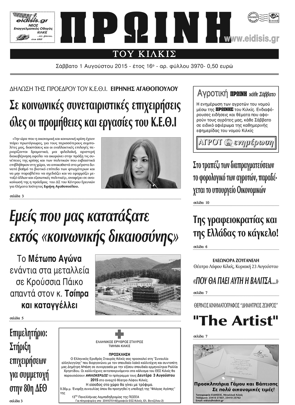 Πέντε χρόνια πριν. Διαβάστε τι έγραφε η καθημερινή εφημερίδα ΠΡΩΙΝΗ του Κιλκίς (1-8-2015)