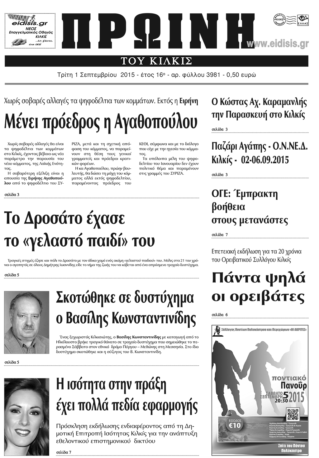 Πέντε χρόνια πριν. Διαβάστε τι έγραφε η καθημερινή εφημερίδα ΠΡΩΙΝΗ του Κιλκίς (1-9-2015)