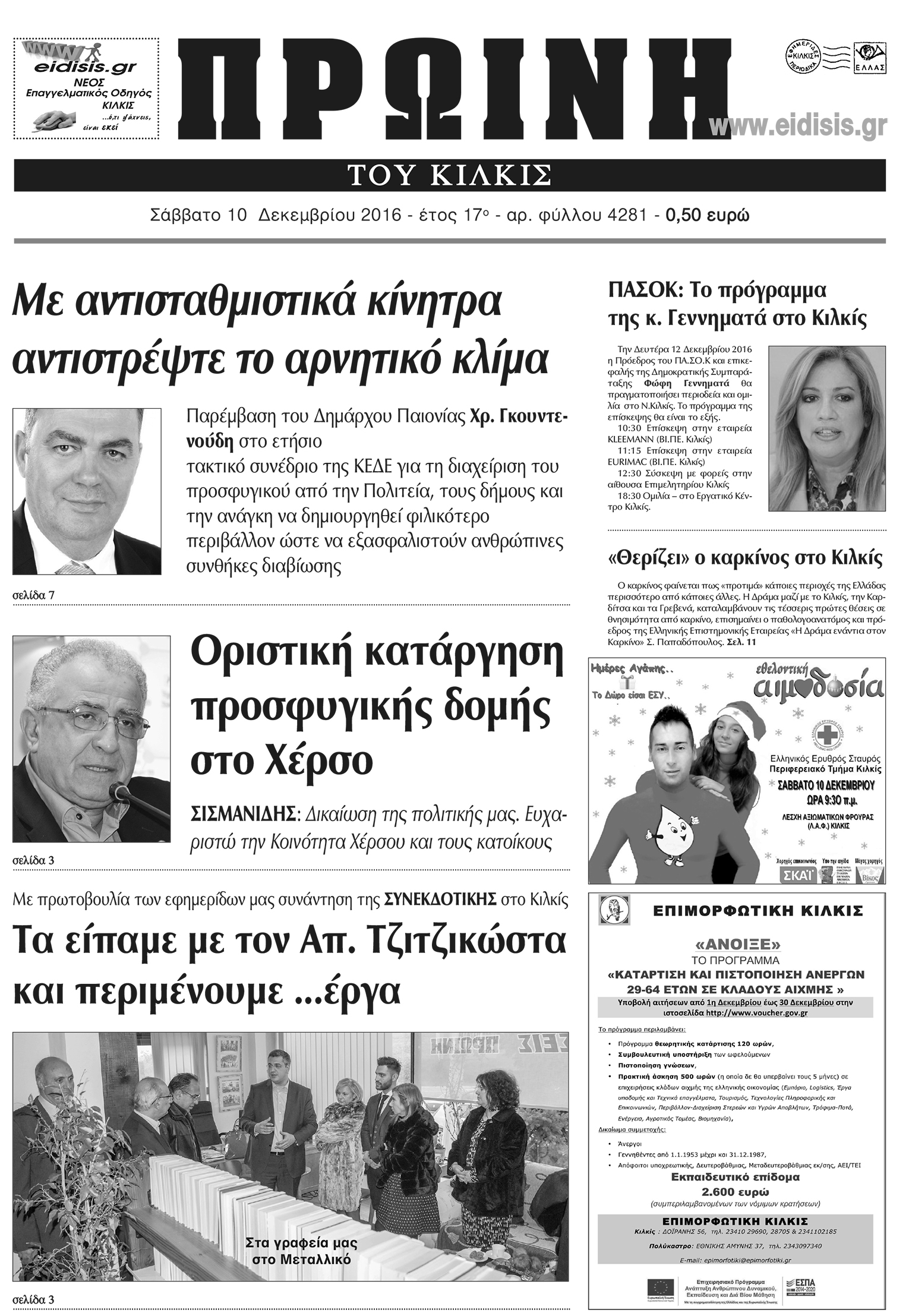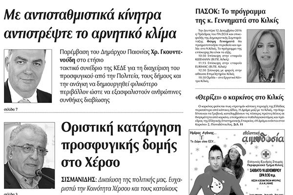 Πέντε χρόνια πριν. Διαβάστε τι έγραφε η καθημερινή εφημερίδα ΠΡΩΙΝΗ του Κιλκίς (10-12-2016)