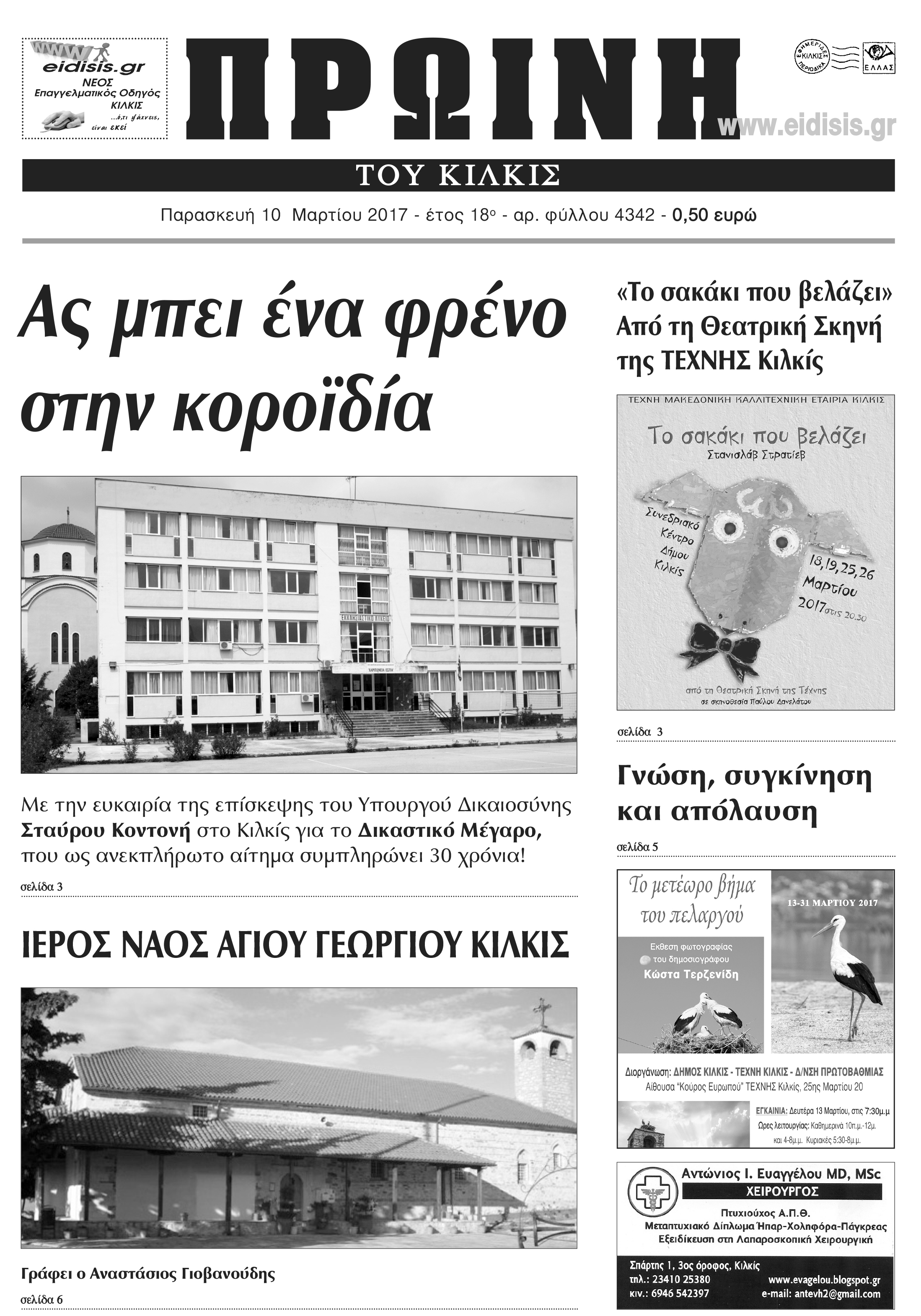 Πέντε χρόνια πριν. Διαβάστε τι έγραφε η καθημερινή εφημερίδα ΠΡΩΙΝΗ του Κιλκίς (10-3-2017)