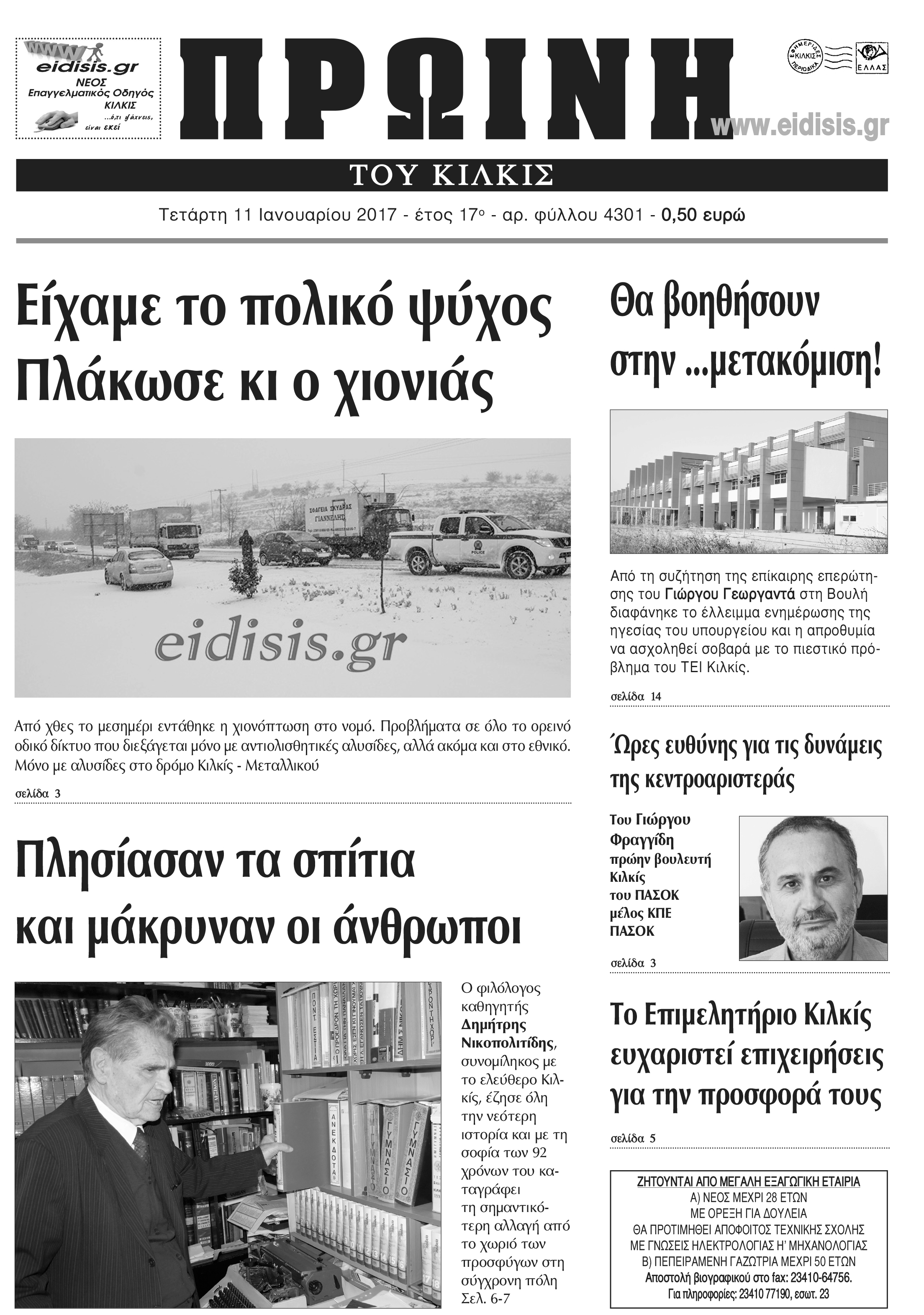 Πέντε χρόνια πριν. Διαβάστε τι έγραφε η καθημερινή εφημερίδα ΠΡΩΙΝΗ του Κιλκίς (11-1-2017)
