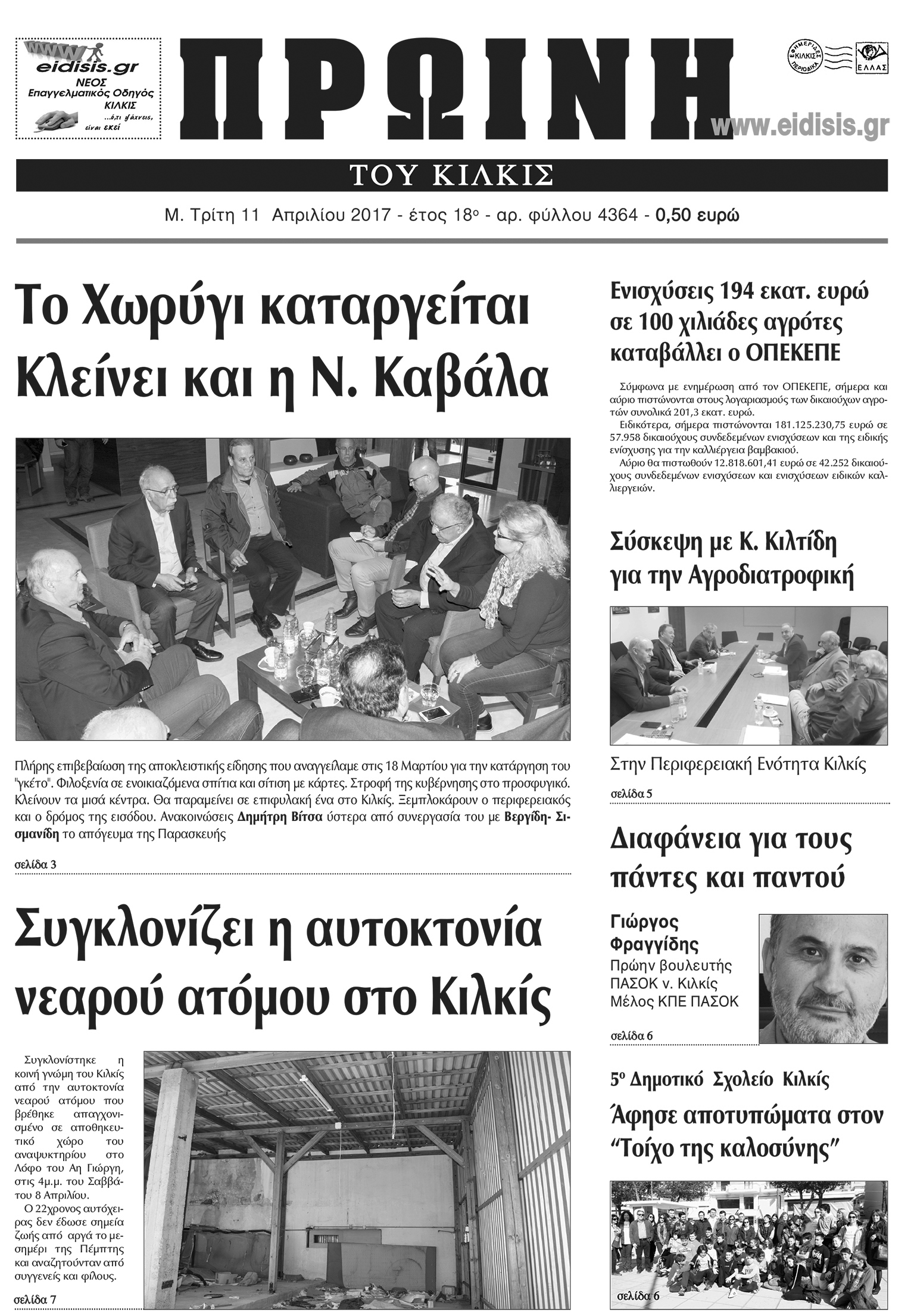 Πέντε χρόνια πριν. Διαβάστε τι έγραφε η καθημερινή εφημερίδα ΠΡΩΙΝΗ του Κιλκίς (11-4-2017)