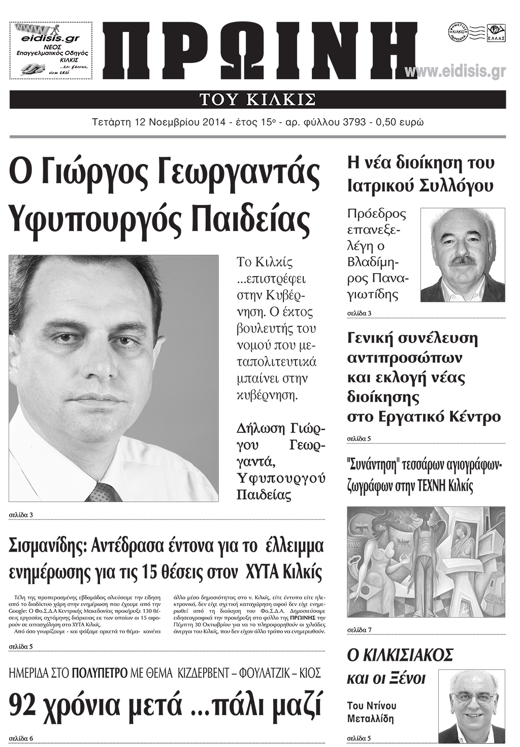 Πέντε χρόνια πριν. Διαβάστε τι έγραφε η καθημερινή εφημερίδα ΠΡΩΙΝΗ του Κιλκίς (12-11-2014)